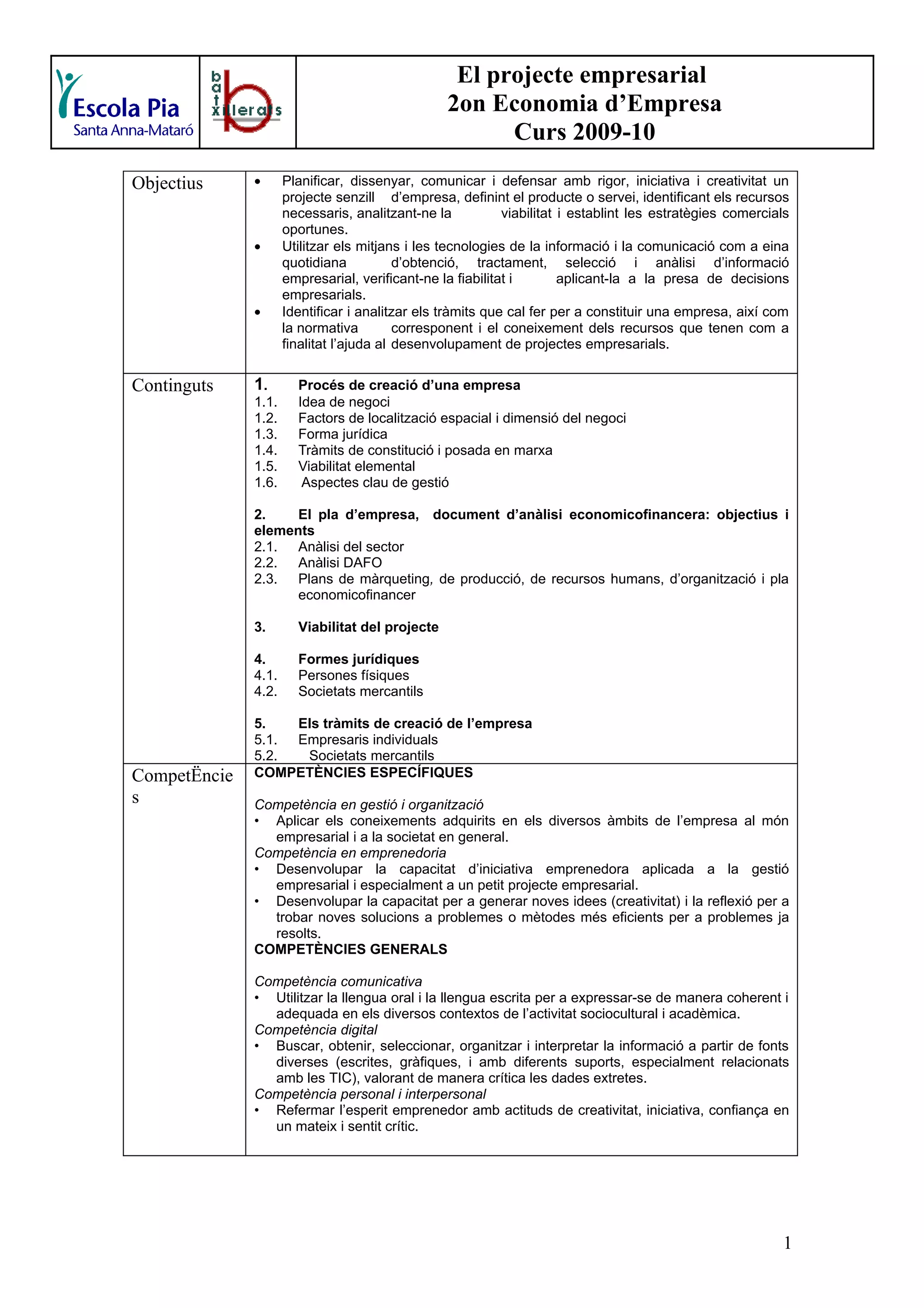 2. El pla d’empresa, document d’anàlisi economicofinancera: objectius i