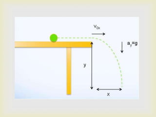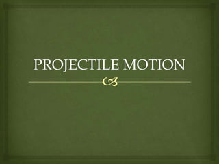 The document discusses projectile motion. Projectile motion involves both vertical and horizontal motion that are independent of each other. There are two cases of projectile motion: horizontal launch and angled launch. Factors like initial velocity and projection angle affect the motion of a projectile by influencing its trajectory, range, and height. While a projectile experiences free fall due to gravity, projectile motion and free fall involve different types of motion.