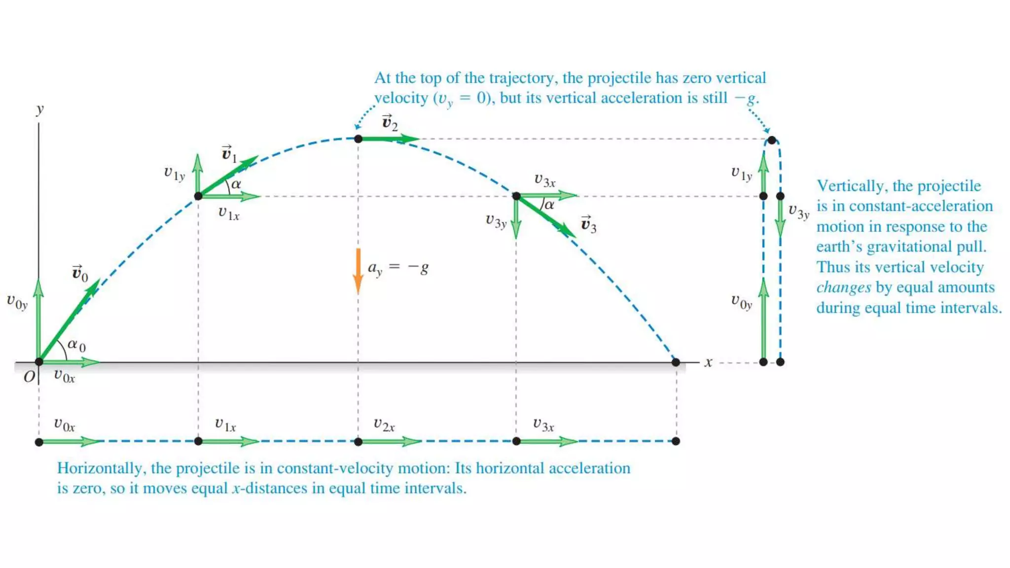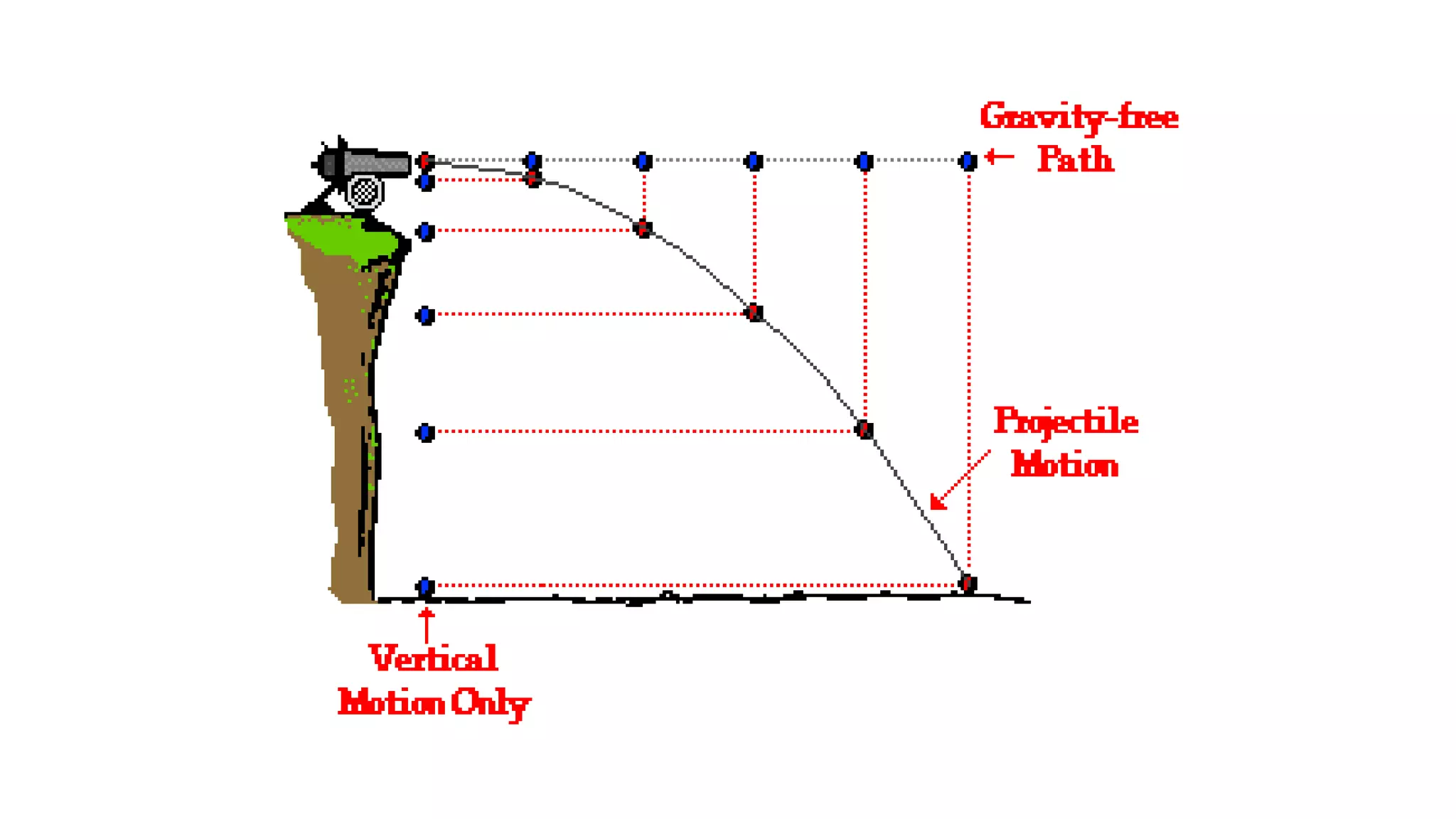 This document discusses projectile motion and Galileo's experiments showing that all objects fall at the same rate regardless of mass when air resistance is negligible. It provides equations to describe the horizontal and vertical motion of a projectile. These equations can be used to find the distance, speed, direction, and trajectory of a projectile at any given time. The document also discusses how projectile motion is a combination of horizontal and vertical motion and provides examples of calculating values like time, distance, position, and velocity for various projectile scenarios.