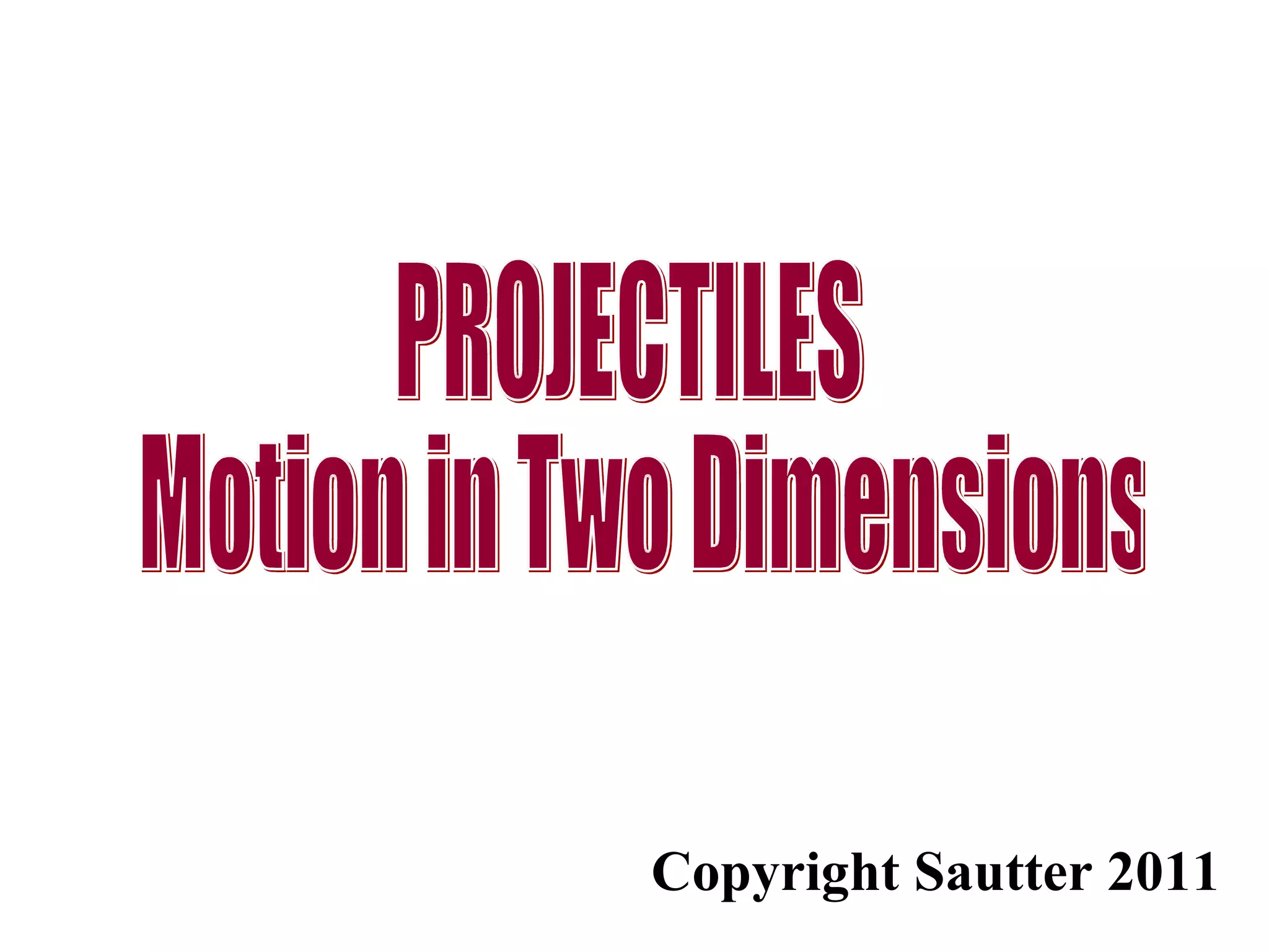 The document discusses projectile motion in two dimensions, detailing how objects move both vertically and horizontally under the influence of gravity. It explains key concepts, equations, and examples related to projectile motion, such as the independence of horizontal and vertical components and how to calculate height and range of projectiles. Additionally, it contrasts ideal scenarios with real-life effects like air resistance and terminal velocity.