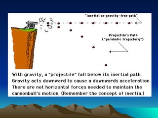 2) The path of a projectile is a combination of its horizontal and vertical components - horizontal motion is constant while vertical motion is affected by gravity.