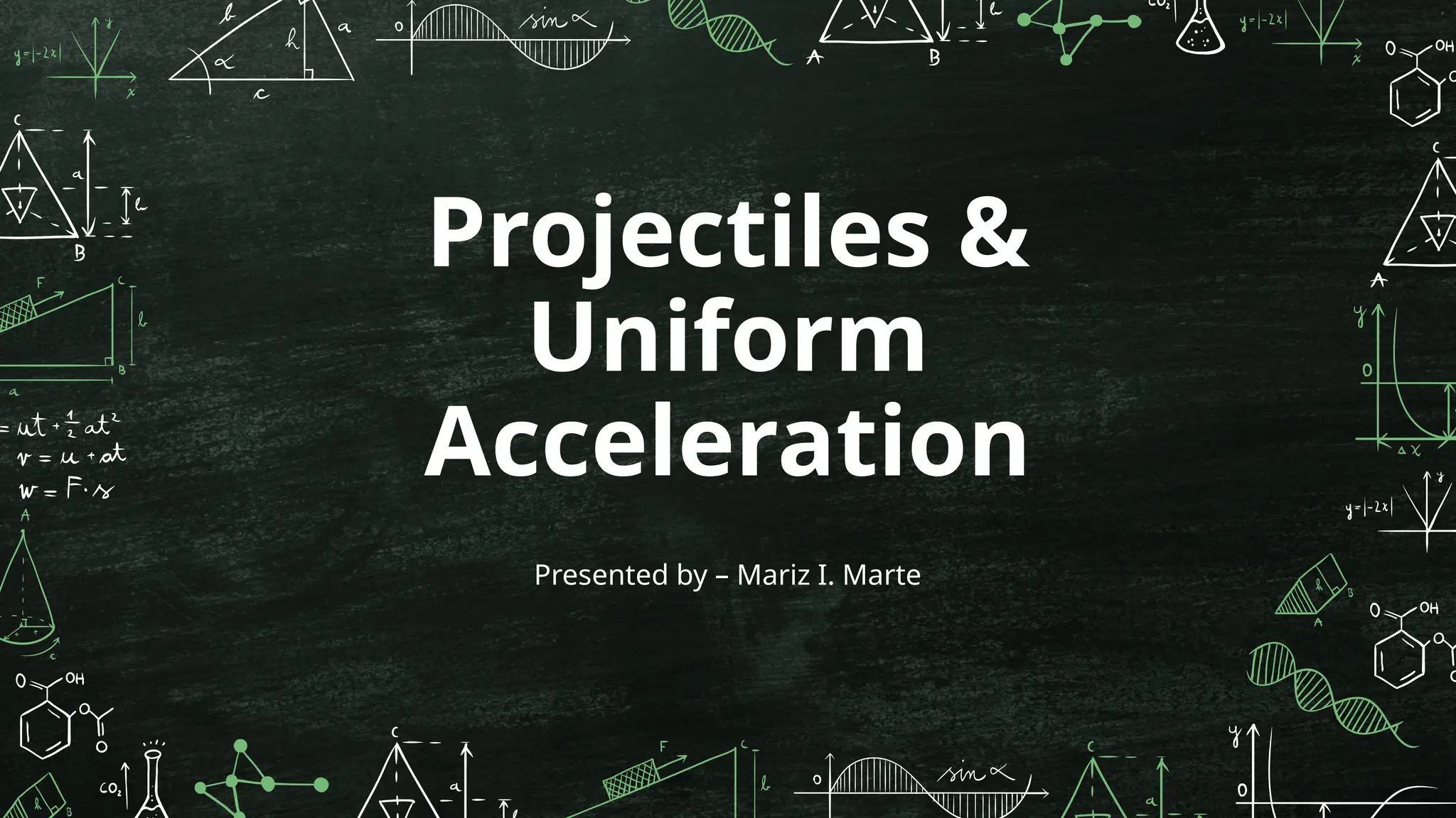 rojectile motion involves an object launched into the air, experiencing constant acceleration due to gravity (uniformly accelerated motion) in the vertical direction, while moving horizontally with constant velocity.