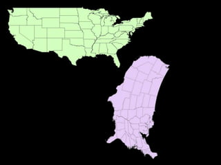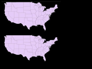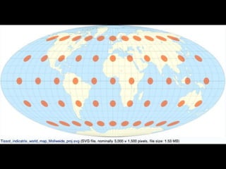 A map projection is a method for mapping spatial patterns on a curved surface (the Earth's surface) to a flat surface. Projections always introduce some distortion of properties like shape, area, direction, or distance. Common projections include Albers, Lambert Azimuthal Equal Area, Mercator, Miller, Mollweide, and Orthographic. Coordinate systems like State Plane and UTM provide a measurement framework by assigning coordinates using projections. Datums define a reference system to place coordinate systems on the Earth's surface and commonly used datums include NAD27, NAD83, and WGS84. Projecting spatial datasets allows data from different sources and projections to be made compatible for analysis.