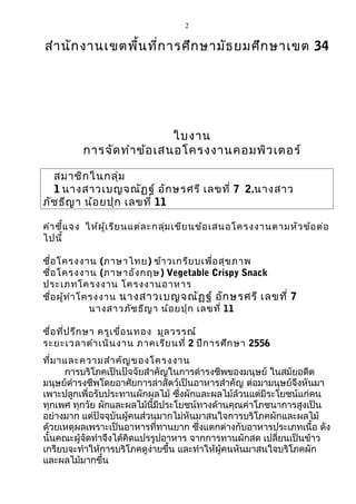 ชื่อ โครงงาน (ภาษาอัง กฤษ) Vegetable Crispy Snack