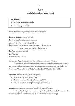 āļĢāļīāļāļāļĢāđ āļāļĄāļĢāļĻāļĢāļĩāļŠāļąāļāļāļ° āđāļĨāļāļāļĩāđ 3 2. āļ.āļŠ.āļĨāļĩāļĨāļēāļāļļāļ āļ āļđāđāļāļē āđāļĨāļāļāļĩāđ 42 āļāļēāļāļĩāđāđāļāļ āđāļŦāđ āļāđ āļđāđāļĢāļĩ āļĒāļāđāļāđ āļĨāļ°āļāļĨāļļāđāļĄāđāļāļĩāļĒāļāļāđ āļāđāļŠāļāļāđāļāļĢāļāļāļēāļāļāļēāļĄāļŦāļąāļ§āļāđ āļāļāđ āļāđāļāļāļĩāđ āļāļ·āđāļāđāļāļĢāļāļāļēāļ (āļ āļēāļĐāļēāđāļāļĒ) : āļāļĨāļđāđāļāļāļĢāļĩāđ āđāļĒāđāļāļīāļĢāđāļāđāļāđāļ āļāļ·āđāļāđāļāļĢāļāļāļēāļ (āļ āļēāļĐāļēāļāļąāļāļāļĪāļĐ): Blueberry Yogurt Cake āļāļĢāļ°āđāļ āļāđāļāļĢāļāļāļēāļ āđāļāļĢāļāļāļēāļāļāļĢāļ°āđāļ āļāļāļĢāļ°āļĒāļļāļāļāđ āđāļāđ āļāļēāļ āļāļ·āđ āļāļāļđāđāļāļēāđāļāļĢāļāļāļēāļ 1. āļāļēāļāļŠāļēāļ§āļŠāļī āļĢāļīāļāļāļĢāđ āļāļĄāļĢāļĻāļĢāļĩ āļŠāļąāļāļāļ° āđāļĨāļāļāļĩāđ 3 āļāļąāđāļ āļĄ.6 āļŦāđāļāļ 13 2. āļāļēāļāļŠāļēāļ§āļĨāļĩāļĨāļēāļāļļāļ āļ āļđāđāļāļē āđāļĨāļāļāļĩāđ 42 āļāļąāđāļ āļĄ.6 āļŦāđāļāļ 13 āļāļ·āđāļāļāļĩāļāļĢāļķāļāļĐāļē āļāļĢāļđ āđāļāļ·āđāļāļāļāļāļ āļĄāļđāļĨāļ§āļĢāļĢāļāđ āđ āļāļ·āđāļāļāļĩāļāļĢāļķāļāļĐāļēāļĢāđ āļ§āļĄ āđ āļĢāļ°āļĒāļ°āđāļ§āļĨāļēāļāļēāđāļāļīāļāļāļēāļ 2 āļāļąāļ§āđāļĄāļ āđ āļāļĩāļĄāļēāđāļĨāļ°āļāļ§āļēāļĄāļŠāļēāļāļąāļāļāļāļāđāļāļĢāļāļāļēāļ (āļāļāļīāļāļēāļĒāļāļķāļāļāļĩāđāļĄāļē āđāļāļ§āļāļīāļ āđāļĨāļ°āđāļŦāļāļļāļāļĨ āļāļāļāļāļēāļĢāļāļēāđāļāļĢāļāļāļēāļ) āđ āđāļāļ·āđāļāļāļāļēāļāļāļđāļāļēāđāļāļĢāļāļāļēāļāļĄāļĩāļāļ§āļēāļĄāļāļ·āđāļāļāļāļāđāļāļāļēāļĢāļāļēāļāļāļĄāļĄāļēāļāđāļĨāļ°āļāļĒāļēāļāđāļŦāđāļāļāļ·āđāļāļŠāļēāļĄāļēāļĢāļāļāļēāļāļāļĄāļāļĩāđ āļŠāļ āļāļĢāđ āļāļĒ āđāļ§āđ āđ āļđāđ āļĢāļąāļāļāļĢāļ°āļāļēāļāđāļāļāđāļāđāđāļāļ·āđāļāļāļĢāļ°āļŦāļĒāļąāļāļāđāļāļāļļāļāđāļĨāļ°āļĄāļĩāļĢāļŠāļāļēāļāļīāđāļāđāļāļāļāļĩāđāļāļāļāļāļēāļĢ āđāļĨāļ°āļĒāļąāļāļŠāļēāļĄāļēāļĢāļāļāļąāļāļāļēāļŠāļđ āļāļĢāđāļāđāļāđāļāļ·āđāļāļāļēāđāļ āđ āļāđāļēāļāļēāļĒāļŠāļĢāđāļēāļāļĢāļēāļĒāđāļāđāđāļŦāđāļāļāļāļāļĩāđāļāļĒāļēāļāļĄāļĩāļĢāļēāļĒāđāļāđāđāļŠāļĢāļī āļĄāļŦāļĢāļ· āļāļāļēāđāļāļ āļāļāļēāļāļĩāļāļŦāļĨāļąāļāđāļāđ āļāļķāļāđāļāđāļāļāļāļēāđāļāļĢāļāļāļēāļāļāļĩāđāļāđ āļķāļ āļđāđ āļą āļ§āļąāļāļāļļāļāļĢāļ°āļŠāļāļāđ (āļŠāļīāđ āļāļāļĩāđāļāļāļāļāļēāļĢāđāļāļāļēāļĢāļāļēāđāļāļĢāļāļāļēāļ āļĢāļ°āļāļļāđāļāļ āļāļāđāļ) āđ 1. āļāļđāļĻāļķāļāļĐāļēāđāļāļĢāļāļāļēāļāđāļāđāļĢāļąāļāļāļ§āļēāļĄāļĢāļđāđāļāļēāļāļāļēāļĢāļāļēāļāļāļĄ āđ āđ 2. āļāļđāļĻāļķāļāļĐāļēāđāļāļĢāļāļāļēāļāļŠāļēāļĄāļēāļĢāļāļāļēāļāļĪāļĐāļāļĩāļāļēāļĢāļāļēāļāļāļĄāđāļāļāļāļīāļāļāļīāđāļāđāļāļĢāļī āļ āđ āļą 3. āļāļđāļĻāļķāļāļĐāļēāđāļāļĢāļāļāļēāļāļŠāļēāļĄāļēāļĢāļāļāļēāļāļ§āļēāļĄāļĢāļđāđāļāļĩāđāđāļāđāđāļāļāļĢāļ°āļĒāļļāļāļāđāđāļāđāđāļŦāđāđāļāļīāļāļāļĢāļ°āđāļĒāļāļāđ āđ āļāļāļāđāļāļāđāļāļĢāļāļāļēāļ (āļāļļāļāļĨāļąāļāļĐāļāļ° āļāļāļāđāļāļ āđāļāļ·āđāļāļāđāļāđāļĨāļ°āļāđāļāļāļēāļāļąāļāļāļāļāļāļēāļĢāļāļēāđāļāļĢāļāļāļēāļ) āđ āļāļēāļĢāļāļēāļāļāļĄāđāļāđāļāļāļ°āļāđāļāļāļĄāļĩāļāļļāļāļāļĢāļāđāļāđāļēāļāđāļāļĢāļāļāļĢāļąāļ āļ§āļąāļāļāļļāļāļīāļāđāļĄāđāļĄāļĩāļāļēāļĒāļāļĒāļđāđāļāļĢāđāļēāļāļŠāļ°āļāļ§āļāļāļ·āđ āļāļāļąāļ§āđāļ āļāđāļāļāļāļ·āđ āļāļāļēāļāļĢāđāļēāļ āđ āļāļēāļĒāļāļāļāļāļēāđāļāđāļāļāļĢāļĩāđ āđāļāđāļēāļāļąāđāļ āđāļĨāļ°āļāļēāļĢāļāļēāļāļāļĄāđāļāđāļāļāļēāļāļāļāļīāļāļāđāļāļāđāļāđāļāļ§āļēāļĄāļĄāļļāđāļāļĄāļąāļāđāļĨāļ°āļāļ§āļēāļĄāļāļāļāļāļŠāļđ āļ āđ