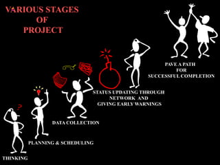 1. It outlines the key stages of a project including planning and scheduling, controlling, and closing.