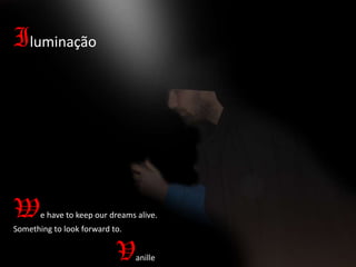 The document contains short quotes and passages from various authors on themes of illumination, inspiration, creation, and a final message. The quotes discuss keeping dreams alive, using wings as a sign of freedom, focusing energy optimistically through games which is the opposite of depression, learning from mistakes and trying again, and the idea that a story may be someone's last chance.