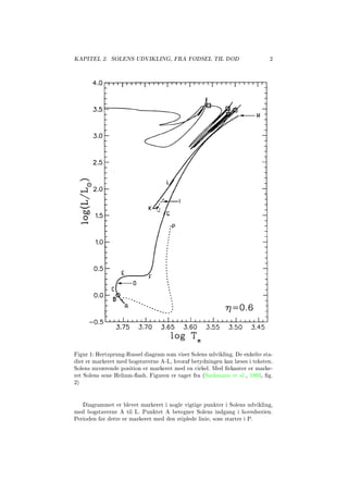 Figur 1: Hertzprung-Russel diagram som viser Solens udvikling. De enkelte sta-