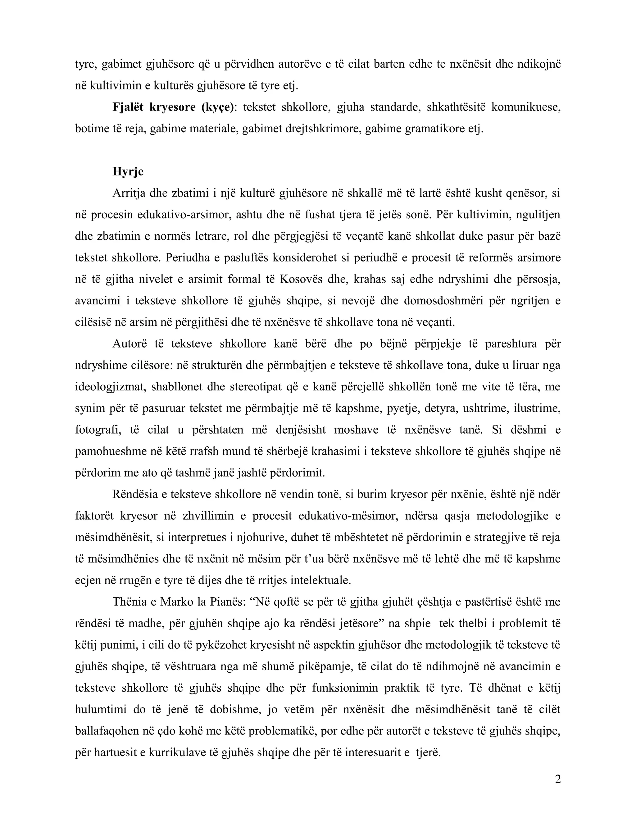 këtij punimi, i cili do të pykëzohet kryesisht në aspektin gjuhësor dhe metodologjik të teksteve të