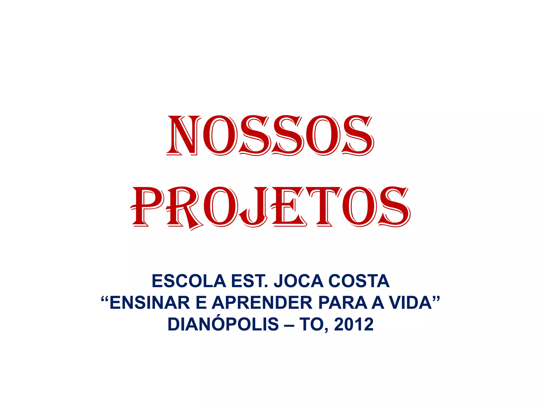 The document repeats information about the Joca Costa elementary school in Dianópolis, Tocantins, Brazil. The school's motto is "Teaching and Learning for Life". The document provides the school's name and location multiple times but no other context or details.