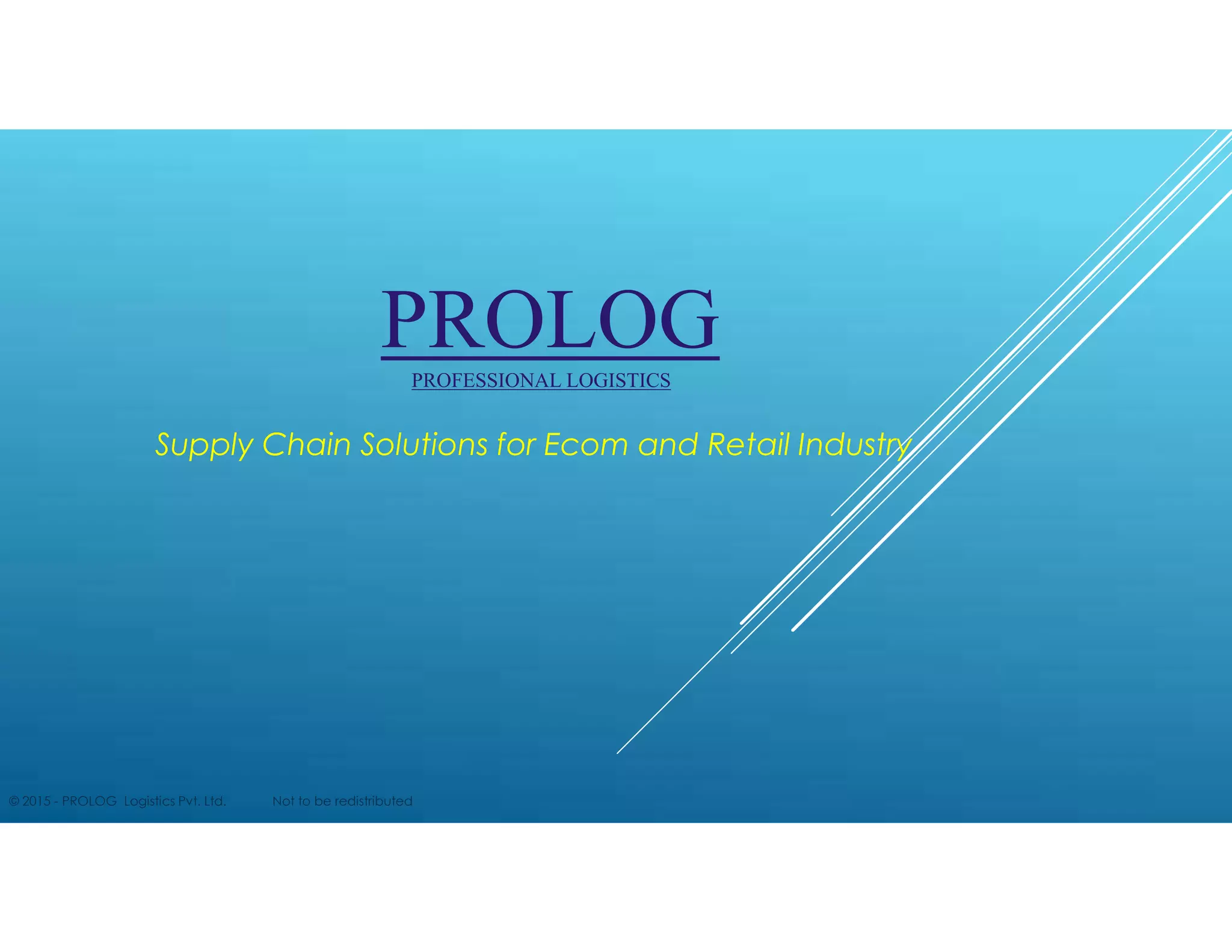 Prolog Logistics provides end-to-end supply chain solutions for e-commerce and retail industries including first and last mile delivery, fulfillment centers, line haul networks, reverse logistics, inventory audits, and storage solutions. They have vast experience in logistics and pride themselves on offering expertise at economical prices. Prolog is a Gurgaon-based organization exclusively managing logistics, warehousing, distribution, and inventory audits for renowned brands across India with a dedicated professional team.