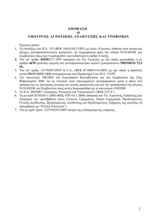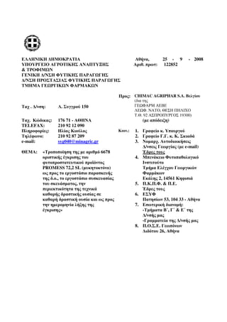 αριθµό 6678 οριστική έγκριση στο φυτοπροστατευτικό προϊόν (µυκητοκτόνο) PROMESS 72,2