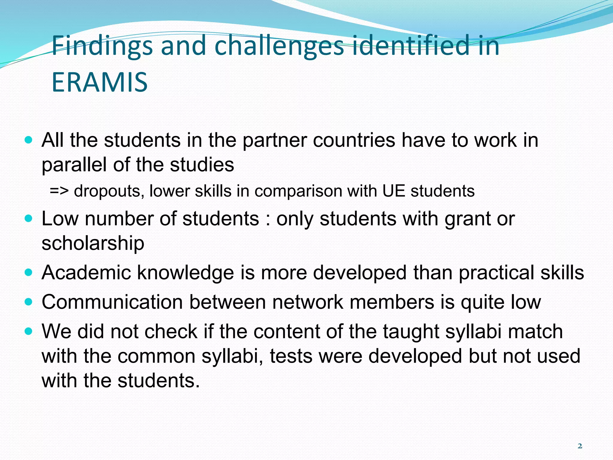 The PROMIS project aimed to improve the quality and vocational focus of master's degrees in computer science in Central Asia. It sought to extend the existing ERAMIS academic network to additional countries, adapt teaching to students who work in parallel to their studies through flipped and work-integrated learning, improve relationships between universities and companies, and enhance the network through shared courses and materials. The project involved universities and companies from Central Asia, Europe, and Finland working together to strengthen informatics education in the region.