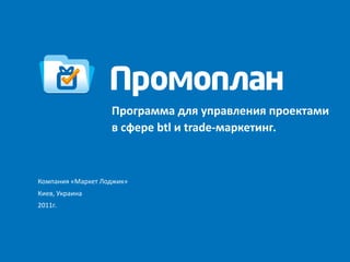 Документ описывает программу управления проектами в сфере BTL и trade-маркетинга от компании 'Маркет Лоджик', которая предлагает множество возможностей для проведения полевых проектов и обеспечения отчетности в реальном времени. Программа позволяет сократить рабочее время, повысить качество проектов и укрепить доверие между клиентами и агентствами, за счет автоматизации и удобного интерфейса. Отзывы пользователей подчеркивают ее простоту в использовании и быструю поддержку со стороны команды разработчиков.