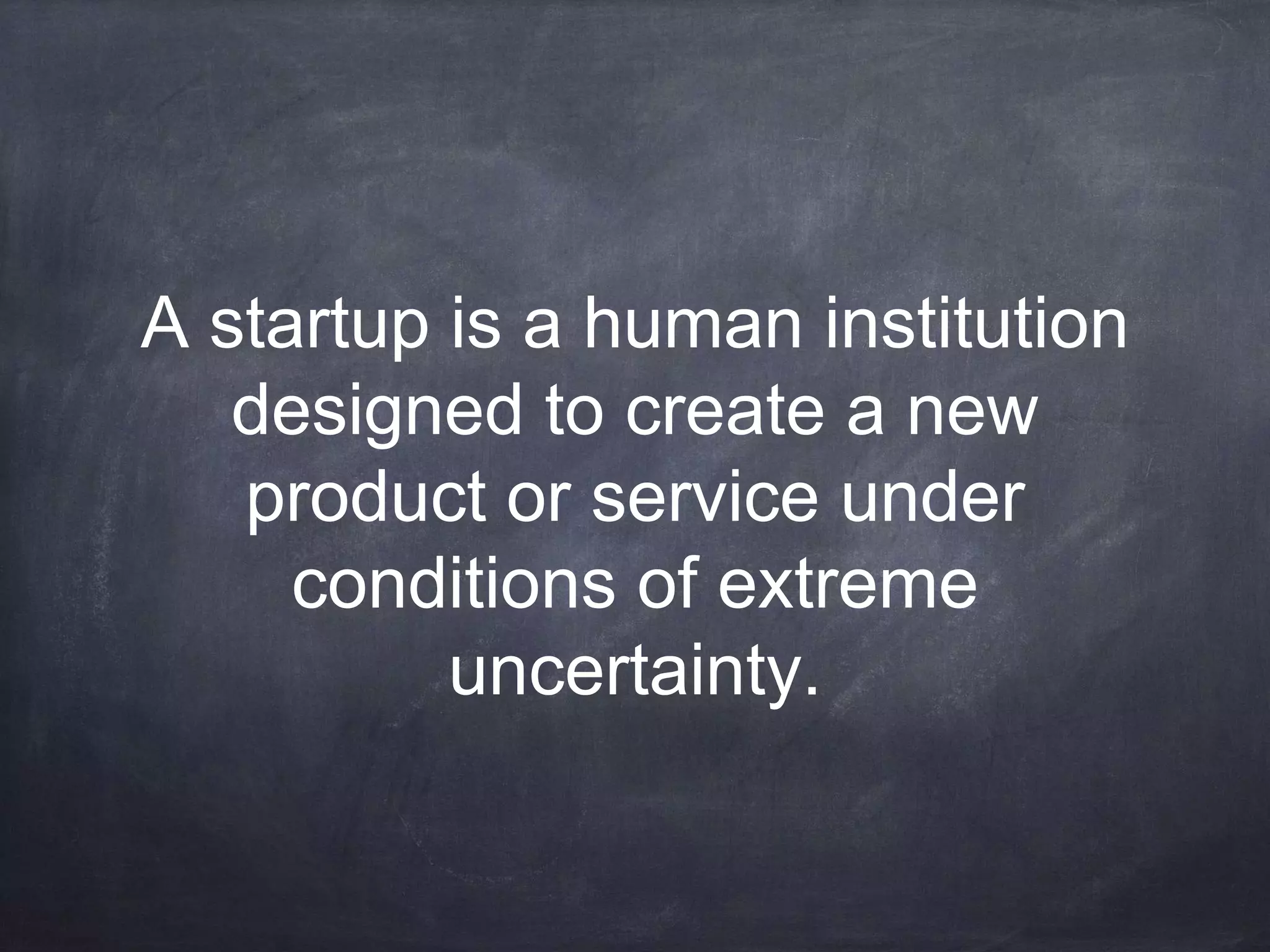 The lean startup methods focus on validated learning through building, measuring, and learning from minimum viable products (MVPs) and experiments. This allows startups to test hypotheses about their products and business models quickly to discover what works best under conditions of extreme uncertainty. Pivoting the business model or product based on learnings is preferable to wasting resources on assumptions that are not validated. Key aspects of the lean startup approach include developing an MVP to test hypotheses with minimum waste, measuring key metrics to understand what is working, and either pivoting the business or persevering based on experimental results.
