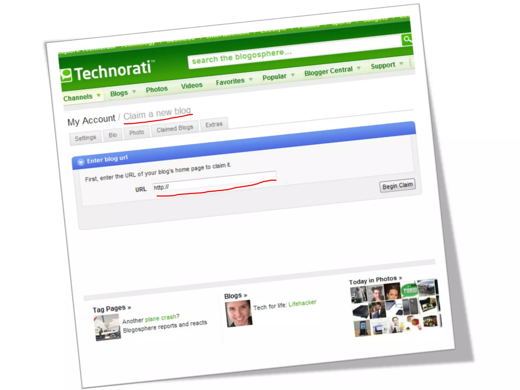 1) Registering your blog on Technorati to increase searchability and rankings.