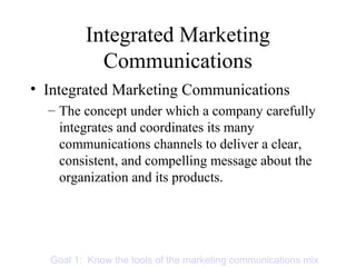 The document discusses marketing communications and promotion. It defines the marketing communications mix and integrated marketing communications. It then outlines six steps to developing effective communications: identifying the target audience, determining objectives, designing the message, choosing media, selecting the message source, and collecting feedback. Finally, it discusses methods for setting promotion budgets and designing the promotional mix, including the tools of advertising, personal selling, sales promotion, public relations, and direct marketing.