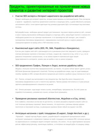 Документ представляет собой краткую справку о компании 'Промовеб', основанной Павлом Ивановым, которая предлагает индивидуальный подход к интернет-маркетингу и SEO-продвижению. Компания зарекомендовала себя на рынке с 2010 года, разработав инновационные продукты для интернет-магазинов и успешно реализовав проекты, увеличивающие трафик и конверсии для клиентов. 'Промовеб' применяет современную стратегию, учитывающую потребности клиентов и рынков, предлагая прозрачные тарифы и детализированные отчеты.