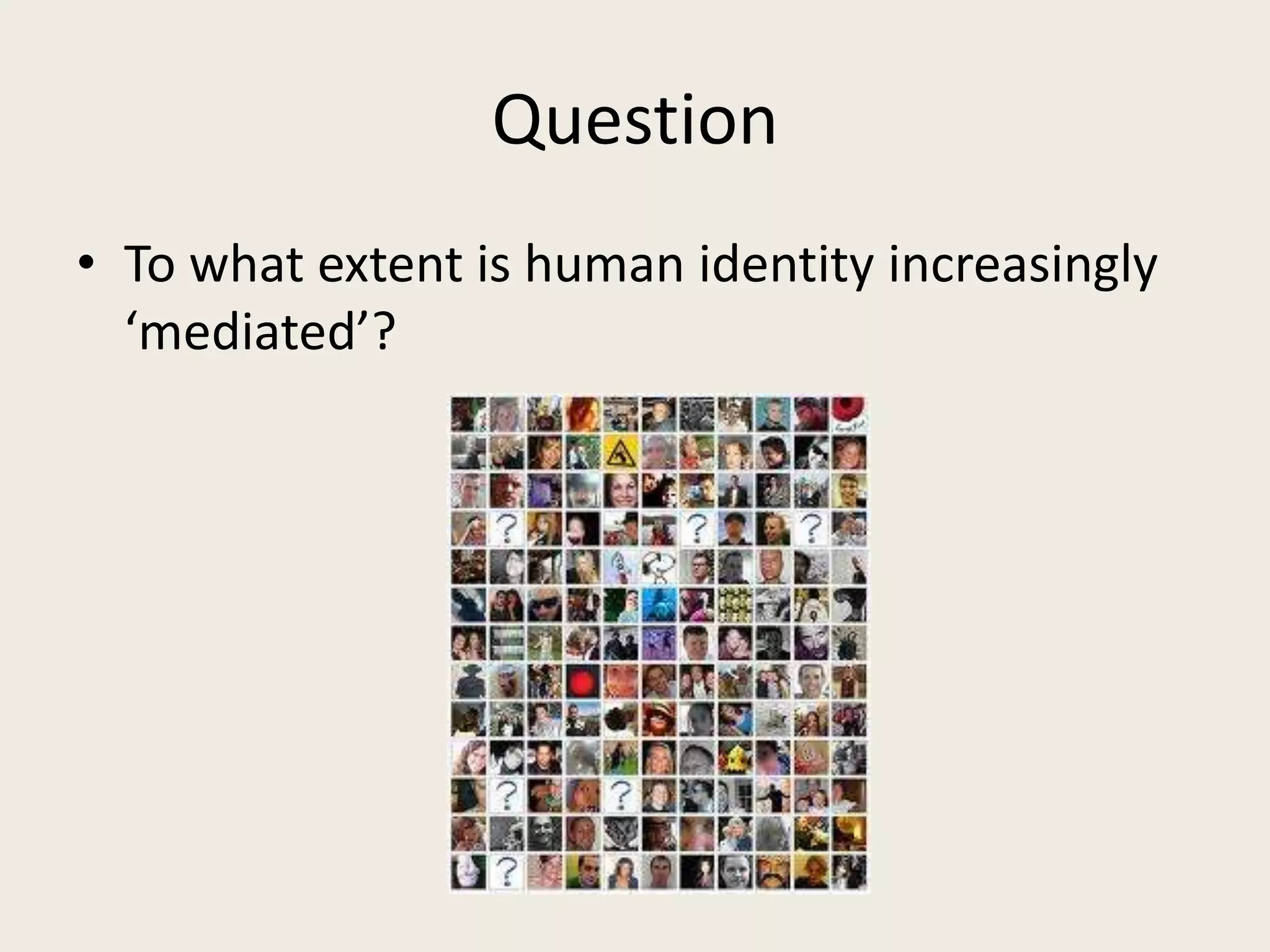 The document discusses how human identity is increasingly "mediated" or shaped by media influences. It covers theories about how audiences both reflect and shape their identities based on media representations. While the media can influence identities through representations that get embedded in popular culture, audiences also actively interpret media texts and use media as tools to navigate and construct their own identities.