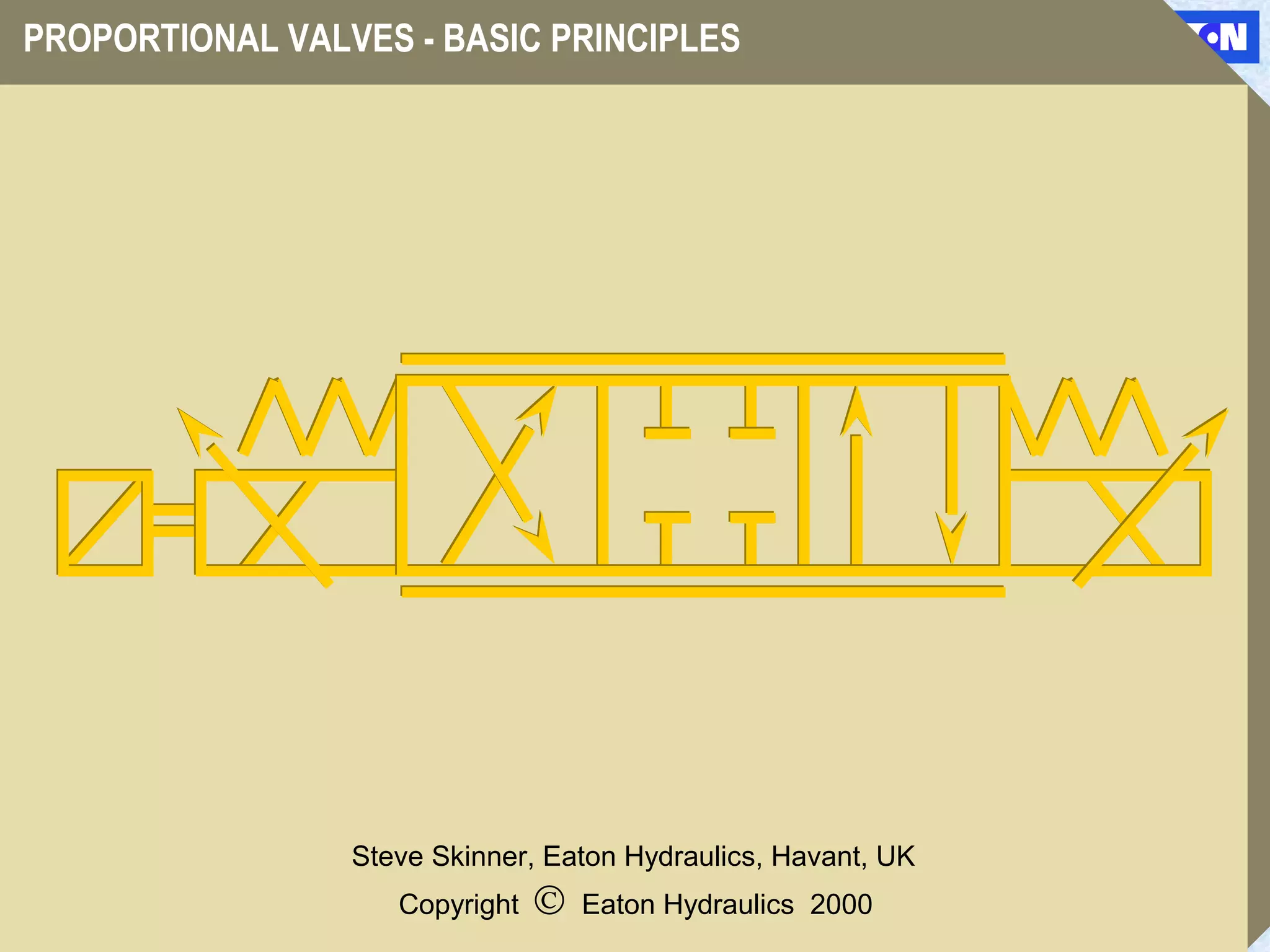 This document discusses proportional valves and their basic principles. It explains that a proportional directional valve can control both the direction and speed of a hydraulic cylinder's movement by varying the position of the valve spool, similar to a dimmer switch controlling light brightness. A proportional solenoid valve uses a solenoid whose force on the spool is proportional to the electric current, allowing varying degrees of spool movement and thus variable flow control. The spool design incorporates notches to better facilitate control of low flow rates. Proportional valves can also be used to regulate hydraulic system pressure.