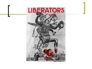 Propaganda uses various techniques to shape perceptions and direct behavior. There are three main classes of propaganda: white propaganda from an openly identified source using gentle persuasion, black propaganda that is false and disguised, and grey propaganda without an identifiable source. Some common propaganda tools include ad hominem attacks, appealing to fear, bandwagoning to join the majority, using emotionally appealing but vague language, testimonials from respected figures, stereotyping groups, presenting only two choices as alternatives, and providing non-sequitur responses.