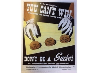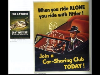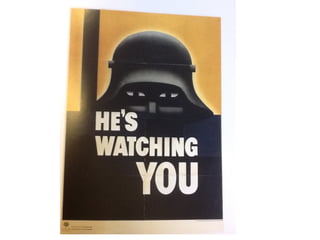 Propaganda is information spread by an organization to promote a cause. It originated from the Catholic Church spreading faith. Propaganda is often perceived negatively, as it is used during wars and conflicts to influence large groups of people. Modern examples include political campaigns and advertising that aim to shape public opinion in a particular direction. The document provides criteria for a propaganda poster project, including choosing an issue to promote visually through images and text, using compositional techniques like strong angles, and including a catchphrase and factual information.