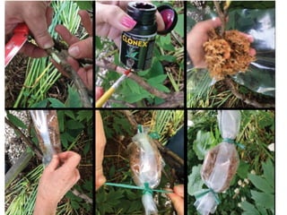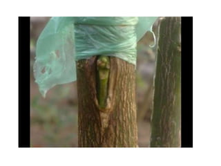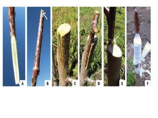 4. Specific techniques for each method are described including rooting stem cuttings, layering branches in the soil, grafting using approaches like wedge grafting, and b