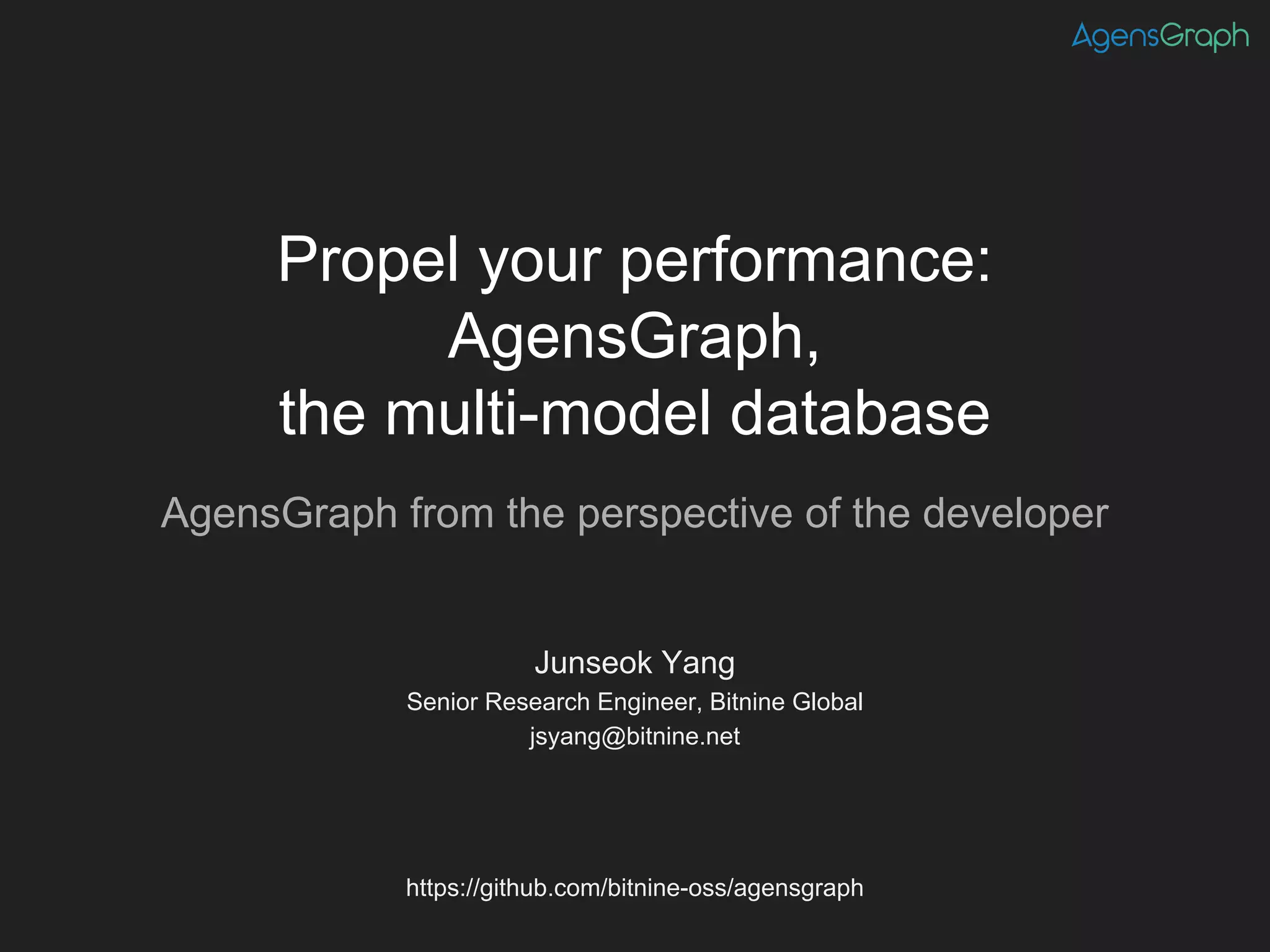 AgensGraph is a multi-model database that supports graphs, relational data, and documents. It provides a graph query language and SQL support while maintaining ACID properties. The developer presentation discusses AgensGraph's goals of providing a graph engine, graph query language, and high performance. It also covers challenges in implementing features like variable length relationships, label hierarchies, and writing queries.