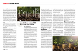 The document discusses several options for micro-investing in residential property with small amounts of money, including co-investing with friends, using the equity in a family home as security to purchase an investment property, fractional property funds that allow investment in individual properties for as little as $100, listed property stocks and ETFs on the stock market, and contributory secured first mortgages that provide high yields with low risk. It notes both benefits and risks for each option, such as lower costs and diversification benefits but also less control and liquidity than owning a whole property.