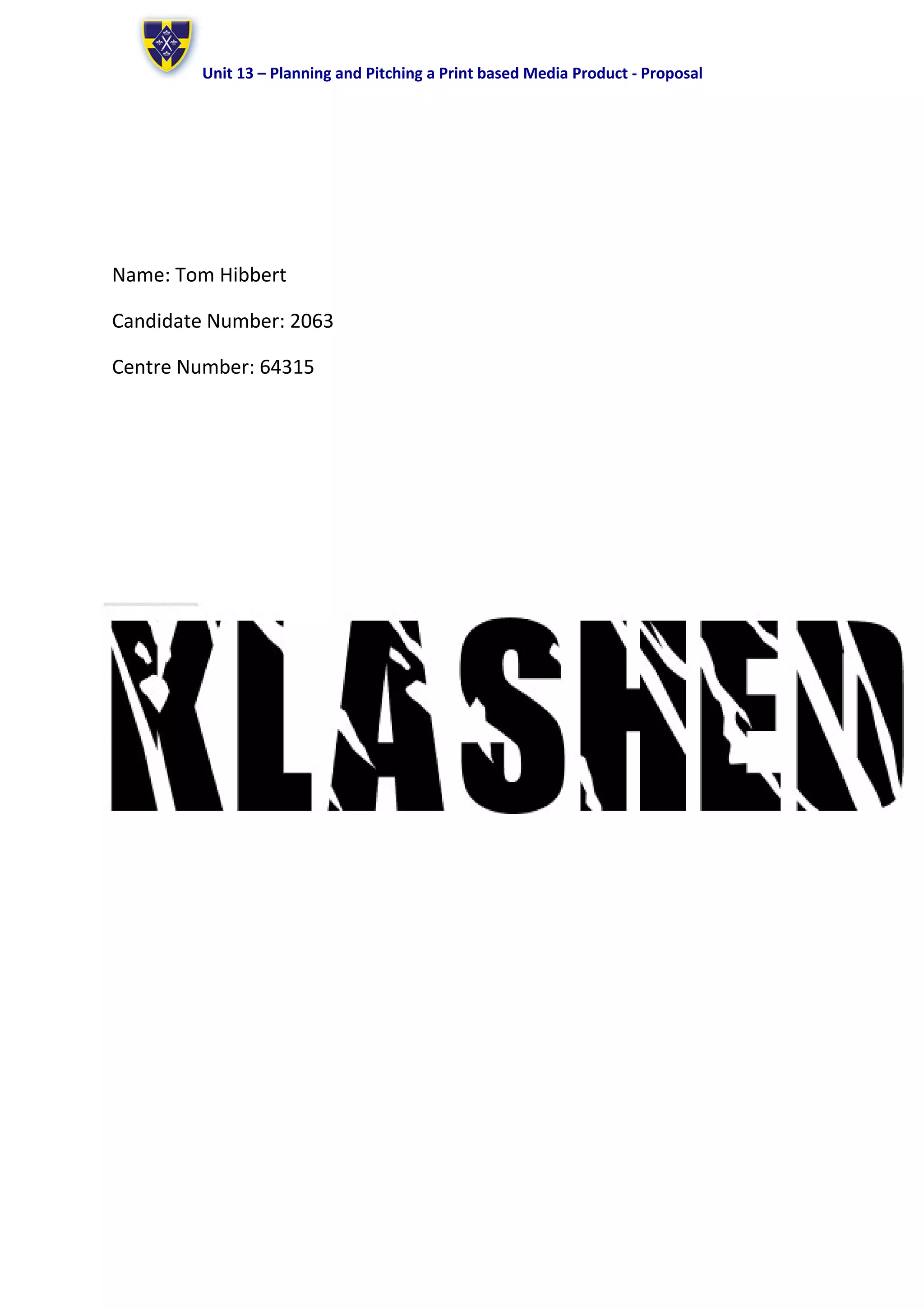 Tom Hibbert is proposing a new rock music magazine called "Klashed". The magazine will have a front cover and double page spread (DPS) illustrating its theme and content. It will compete with magazines like "Kerrang" and "Rock Sound" by providing detailed information to entertain readers. The magazine will feature pictures, articles, tour dates and band profiles of both mainstream and lesser known modern rock bands. Tom will use Photoshop to construct the magazine pages and DPS, allowing him to lay out the design and edit photos to fit the purple, yellow and black color scheme and broken font style inspired by "Kerrang". The target audience is male and female fans aged 16-25 interested in