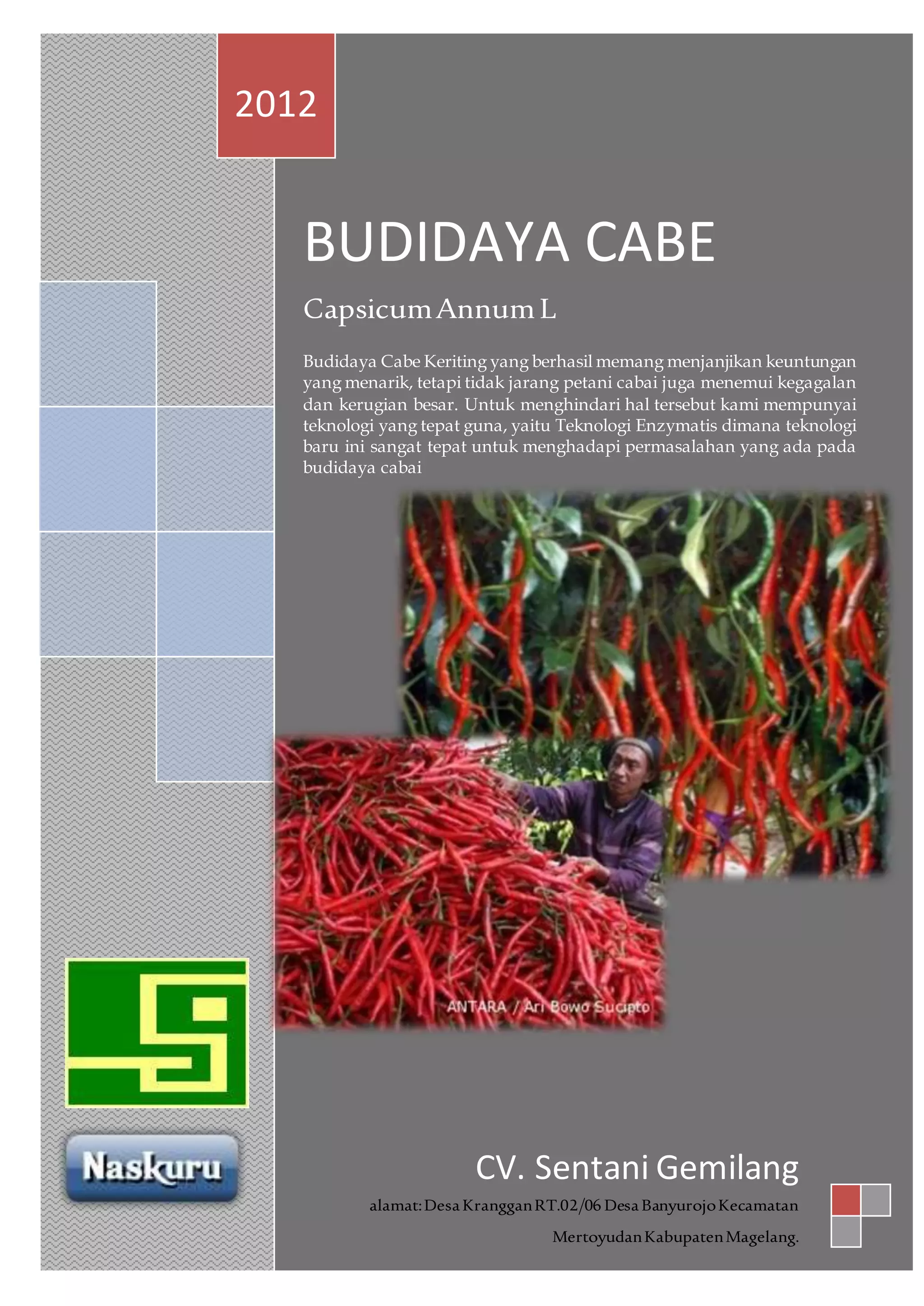 Dokumen ini membahas potensi budidaya cabe keriting di Magelang, termasuk teknologi enzymatis untuk mengatasi masalah dalam produksinya. Budidaya cabe menjadi peluang usaha yang menjanjikan dengan permintaan yang terus meningkat di pasar lokal dan ekspor. Kelayakan finansial dan proyeksi keuntungan untuk usaha budidaya cabe keriting diungkapkan, dengan asumsi bahwa laba signifikan baru dapat dihasilkan mulai bulan keempat.
