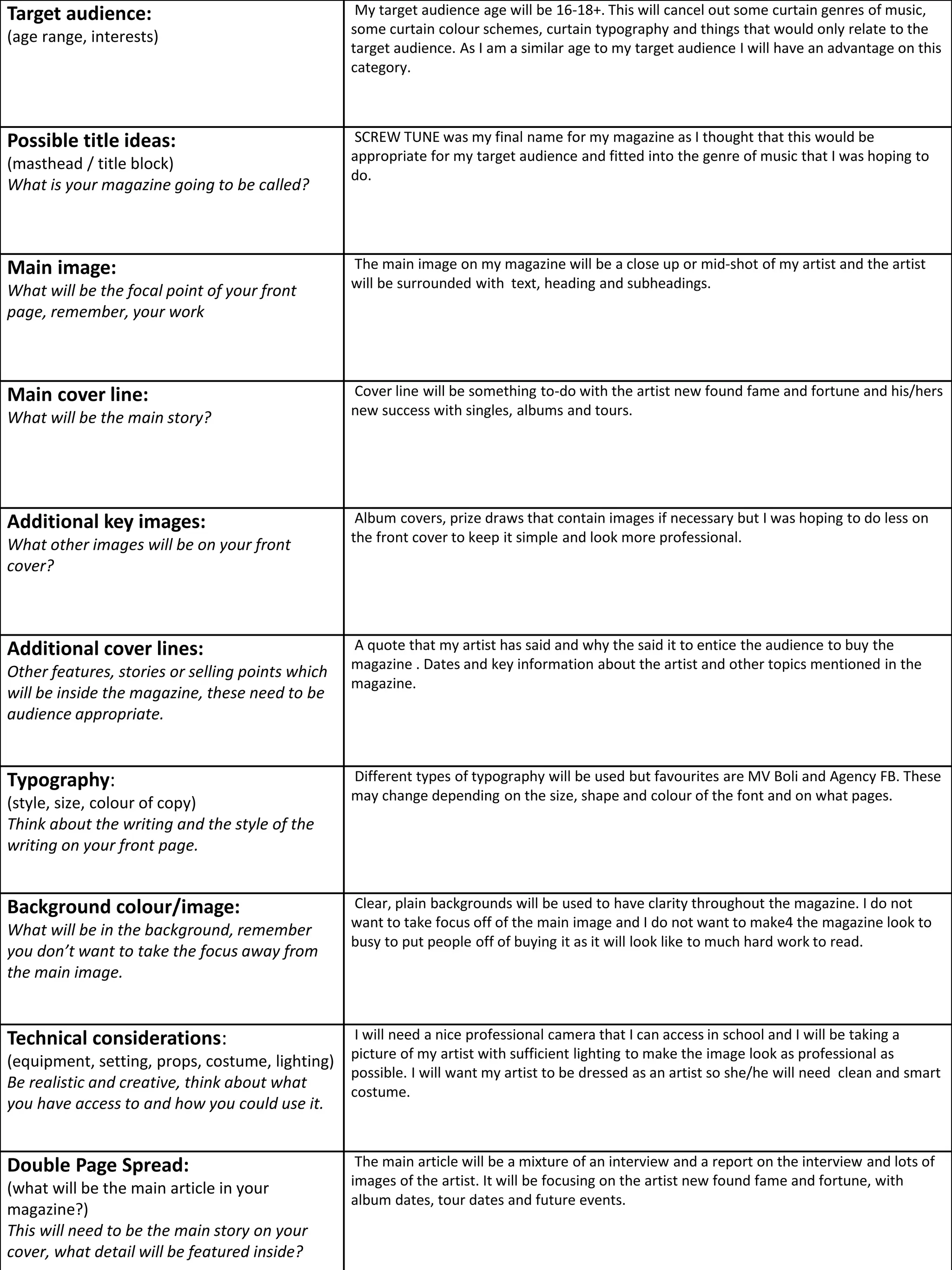 - The target audience for the magazine is 16-18 year olds interested in music. The magazine will be called SCREWTUNE.
