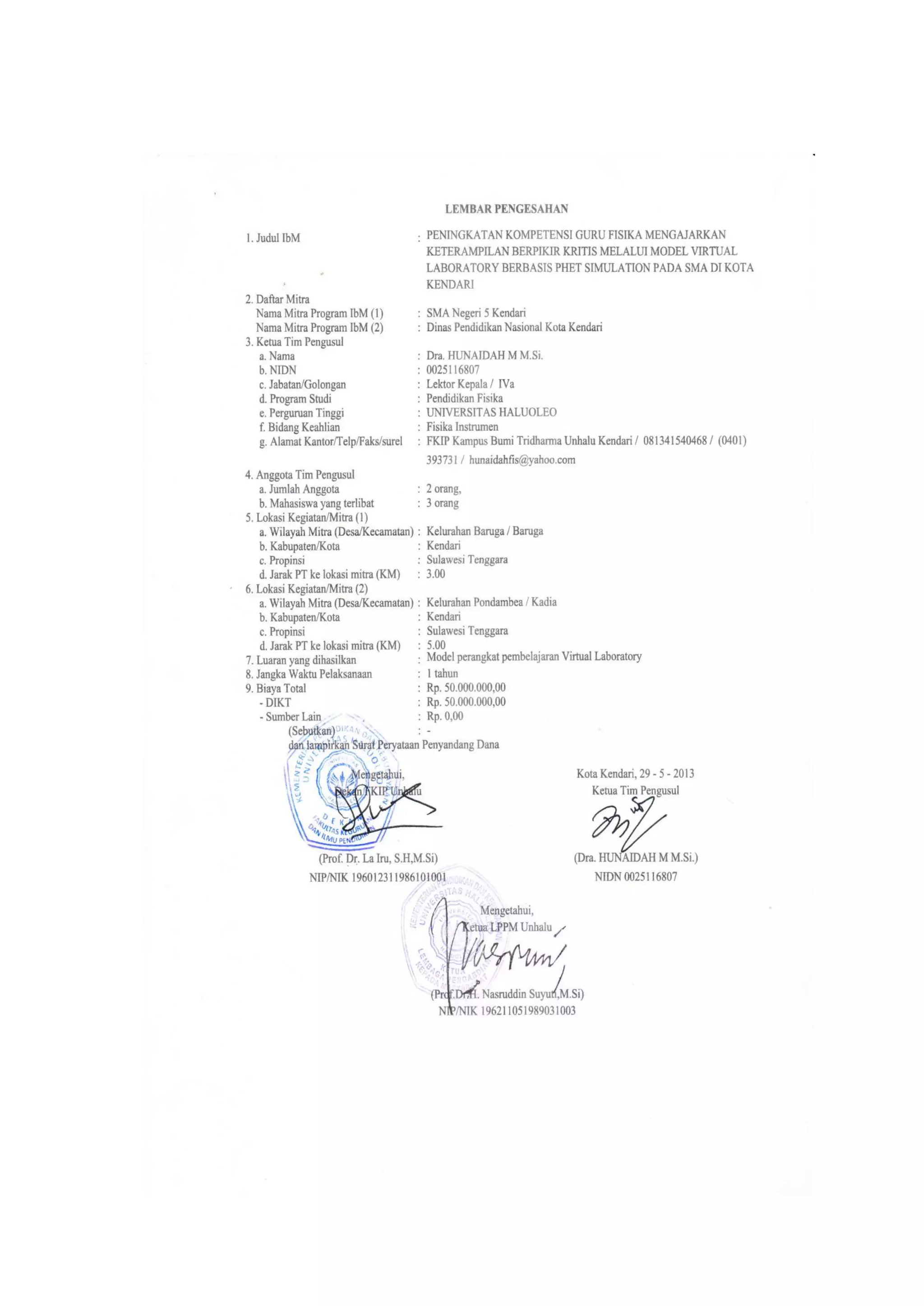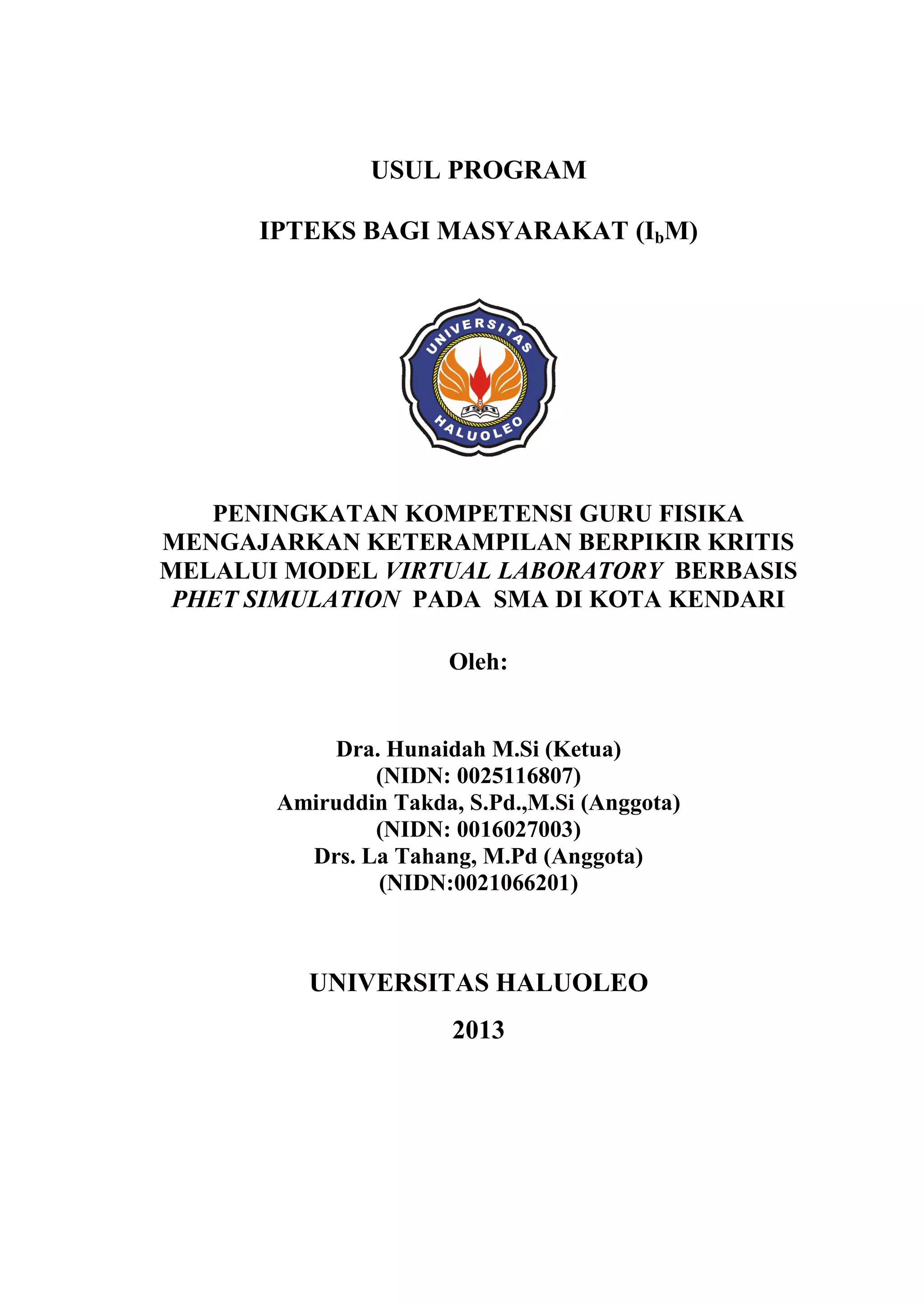 Program ipteks bagi masyarakat ini bertujuan untuk meningkatkan kompetensi guru fisika SMA di Kendari melalui pembimbingan dalam pengembangan dan penerapan perangkat pembelajaran model laboratorium maya berbasis phet simulation, yang dirancang untuk mengajarkan keterampilan berpikir kritis kepada siswa. Kegiatan ini akan dilaksanakan selama delapan bulan dan diharapkan menghasilkan guru yang mampu mengimplementasikan metode yang mendukung penguasaan konsep-konsep fisika yang abstrak. Selain itu, program ini juga mendorong kolaborasi antara guru, kepala dinas pendidikan, dan kepala sekolah untuk meningkatkan kualitas pembelajaran.