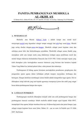 Proposal Anggaran PembangunganMusholla Ikhlas RT. 061, RT. 071 dan RT. 072 Kel. 16 Ulu Kec. Seberang Ulu II Palembang