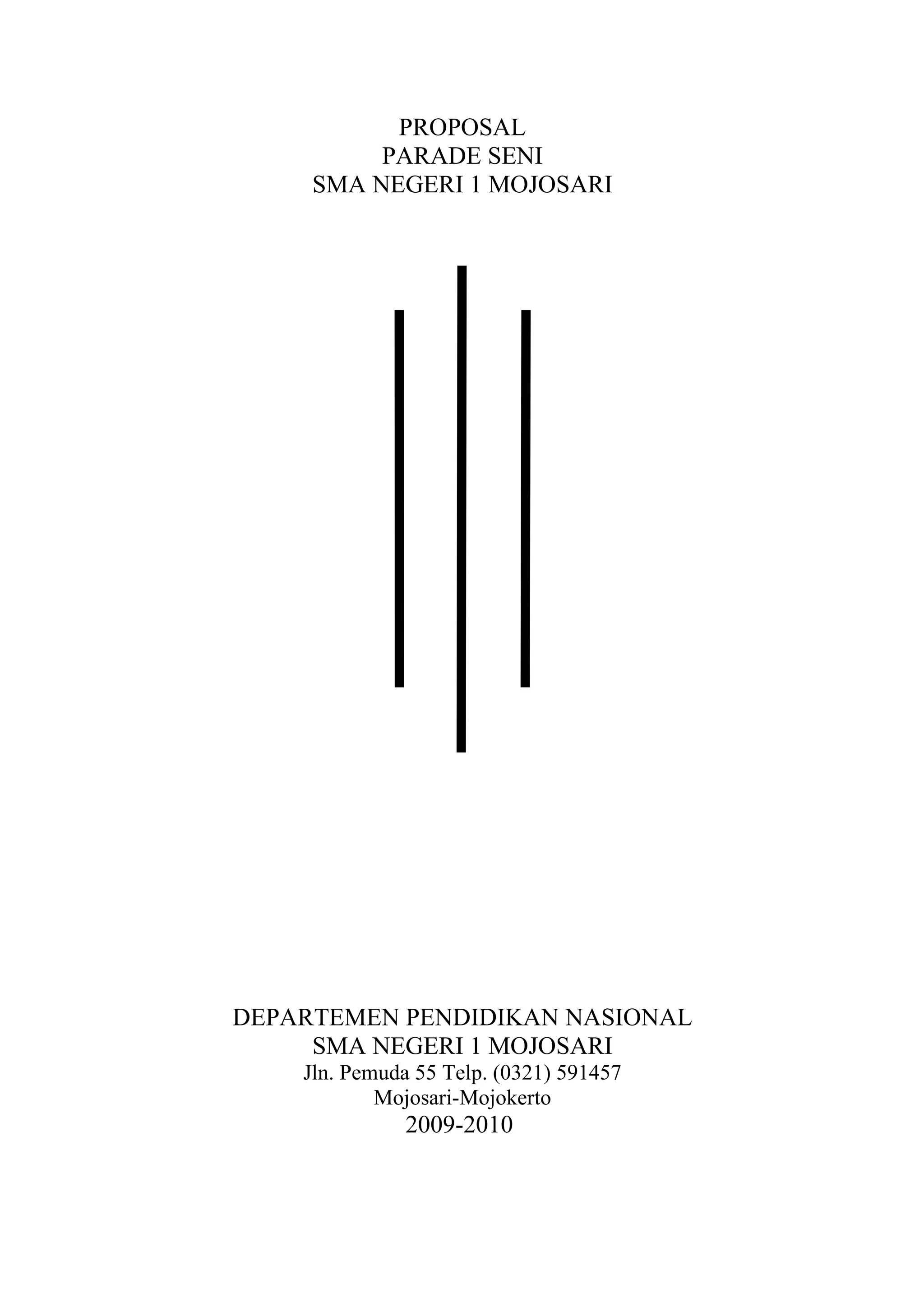 Dokumen ini adalah proposal untuk mengadakan Parade Seni di SMA Negeri 1 Mojosari yang bertujuan untuk meningkatkan kreativitas siswa dan mengurangi kenakalan remaja. Acara ini akan menampilkan penampilan dari grup band, grup tari, dan grup drama dan diadakan pada 7 Januari 2009. Proposal ini juga mencakup anggaran dan susunan panitia yang terlibat.