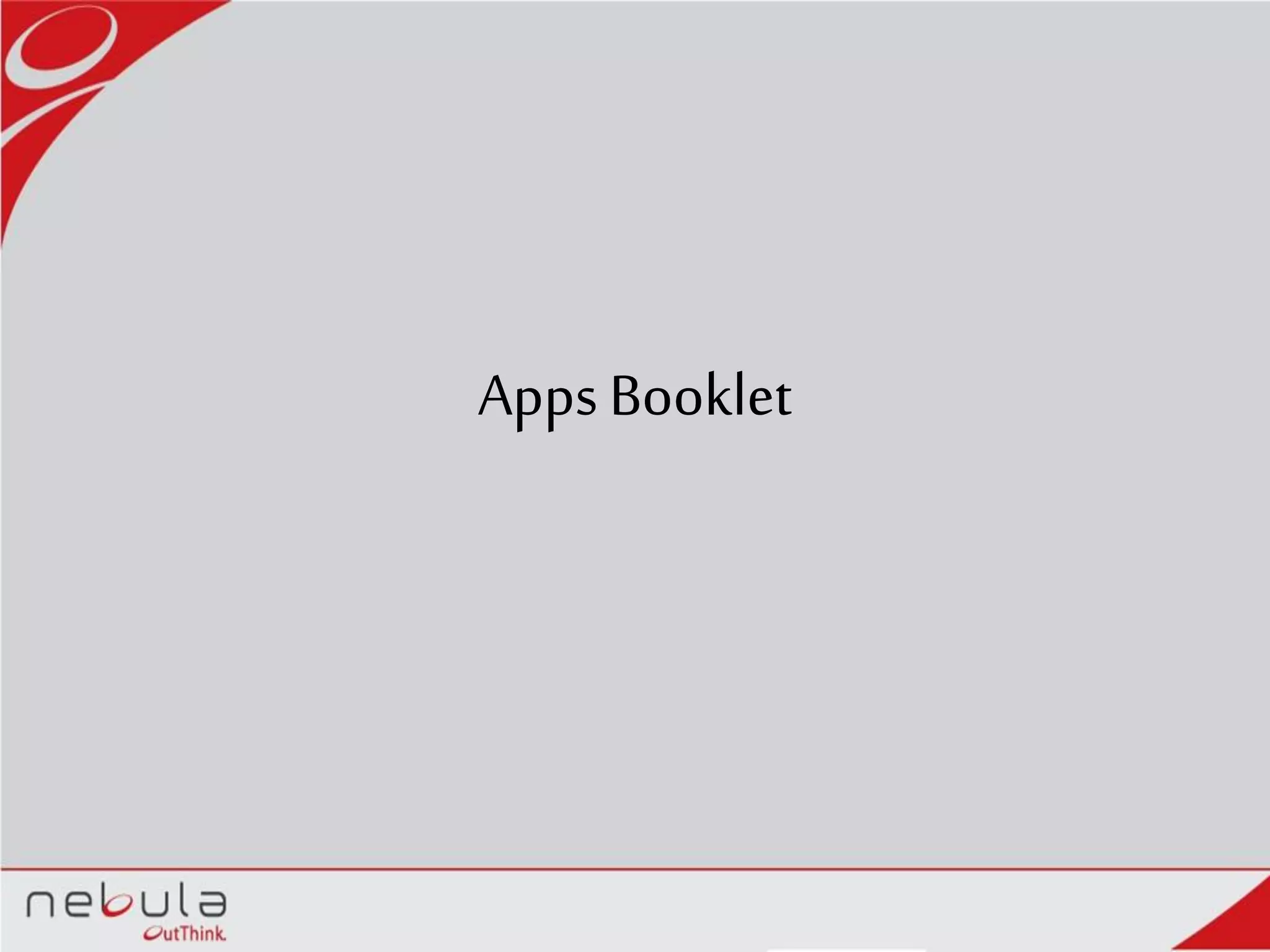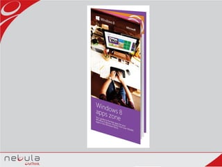 The document discusses plans to create an Apps Booklet to promote awareness of the variety of apps available for Windows 8 devices. The booklet will provide information on best paid apps, best free apps, best local apps, and new releases. It will be placed in academic institutions, retail stores, and kiosks across the UAE to reach electronics users, Windows enthusiasts, and students. The goal is to help drive awareness and usage of the Windows app ecosystem.