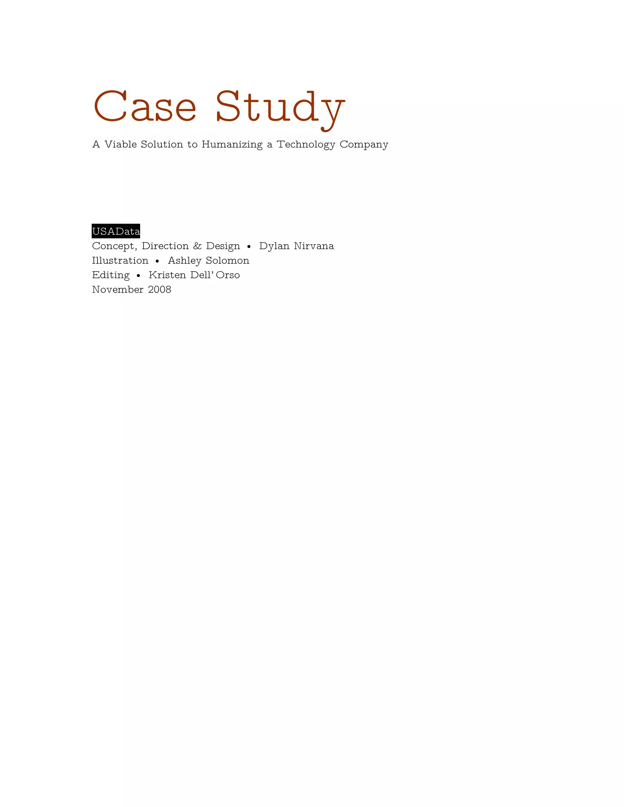 The document outlines a case study aimed at rebranding the technology company Usadata by emphasizing a humanized approach to marketing and identity design. It compares Usadata's current branding to that of Apple, highlighting the need for personal connection and storytelling in technology, ultimately proposing a new model that centers on successful customer experiences as guides. This approach focuses on making technology feel more personable and relatable, thereby enhancing customer engagement and satisfaction.
