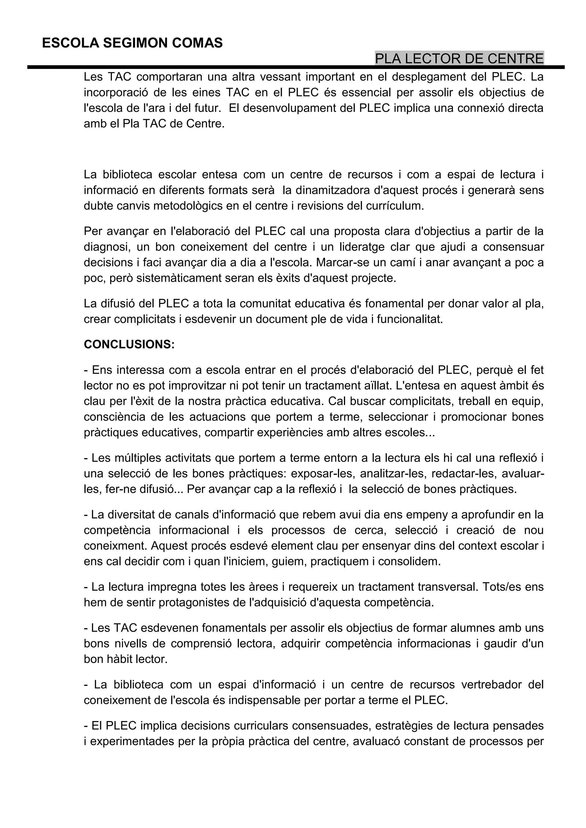 - El PLEC implica decisions curriculars consensuades, estratègies de lectura pensades
