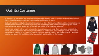The document outlines the props and costumes essential for a thriller sequence targeting young adults aged 15 and above. Key elements include winter clothing for characters, a hooded killer costume to maintain suspense, an iPhone with bloody fingerprints for horror elements, and theatrical makeup to enhance realism. The careful selection of props aims to engage the audience and create a chilling atmosphere throughout the film.