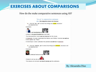 This document is a collaborative work between two students, Alexandra Díaz and Claudia Vallejo, for their Intermediate English II class. It contains individual descriptions by each student about the cities where they live - Sandoná by Alexandra and Ipiales by Claudia. Claudia describes features of Ipiales like its population size and location on the Ecuador border. She also discusses popular celebrations in Ipiales like carnivals and festivals. The document then makes comparisons between the cities described, noting for example that Pasto has a larger carnival than Sandoná but Sandoná is preferable to enjoy with family and friends. It also compares the distances to landmarks like Las Lajas sanctuary from Ipial