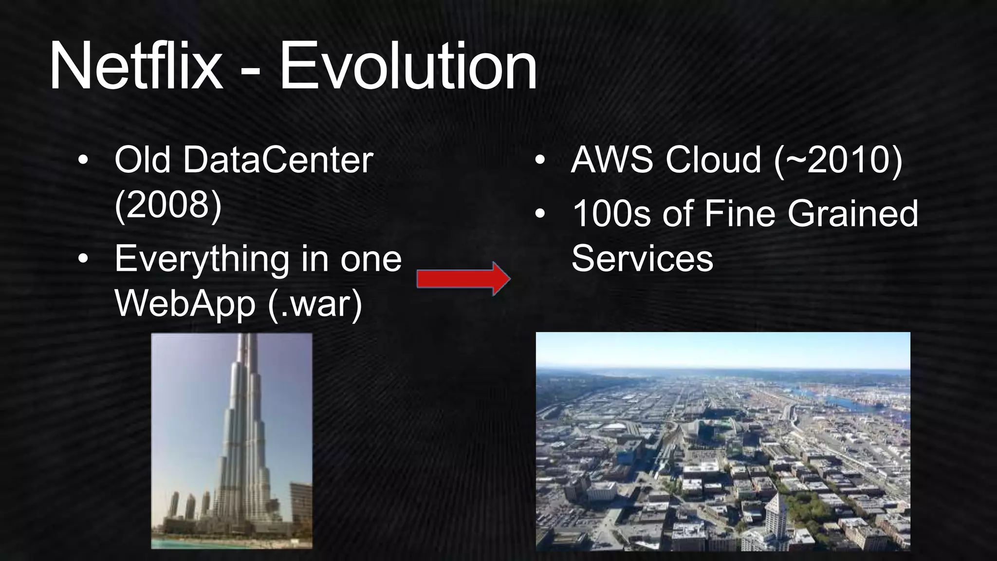 The document discusses the evolution of Netflix from monolithic applications to microservices, highlighting the challenges and best practices associated with this transition. It emphasizes the need for proper design to manage service dependencies and potentially chaotic interactions in a microservices architecture. Various Netflix technologies and open source tools are mentioned that support this transition, including service registries, load balancers, and fault injection testing.