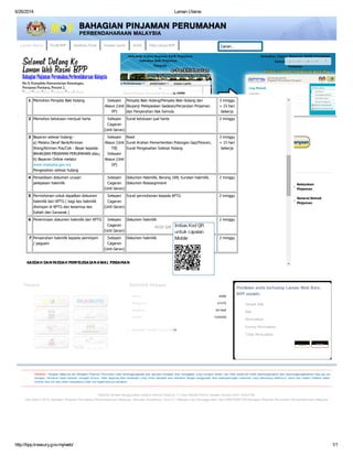 Dokumen ini memberikan informasi mengenai bahagian pinjaman perumahan di Malaysia, termasuk penafian tanggungjawab dan panduan tentang pemohonan pinjaman, proses penyelesaian hutang, serta penyerahan hak milik. Juga terdapat maklumat teknikal untuk penggunaan laman web dan tempoh pemprosesan bagi pelbagai urusan. Kemaskini terakhir adalah pada 12 Jun 2014.