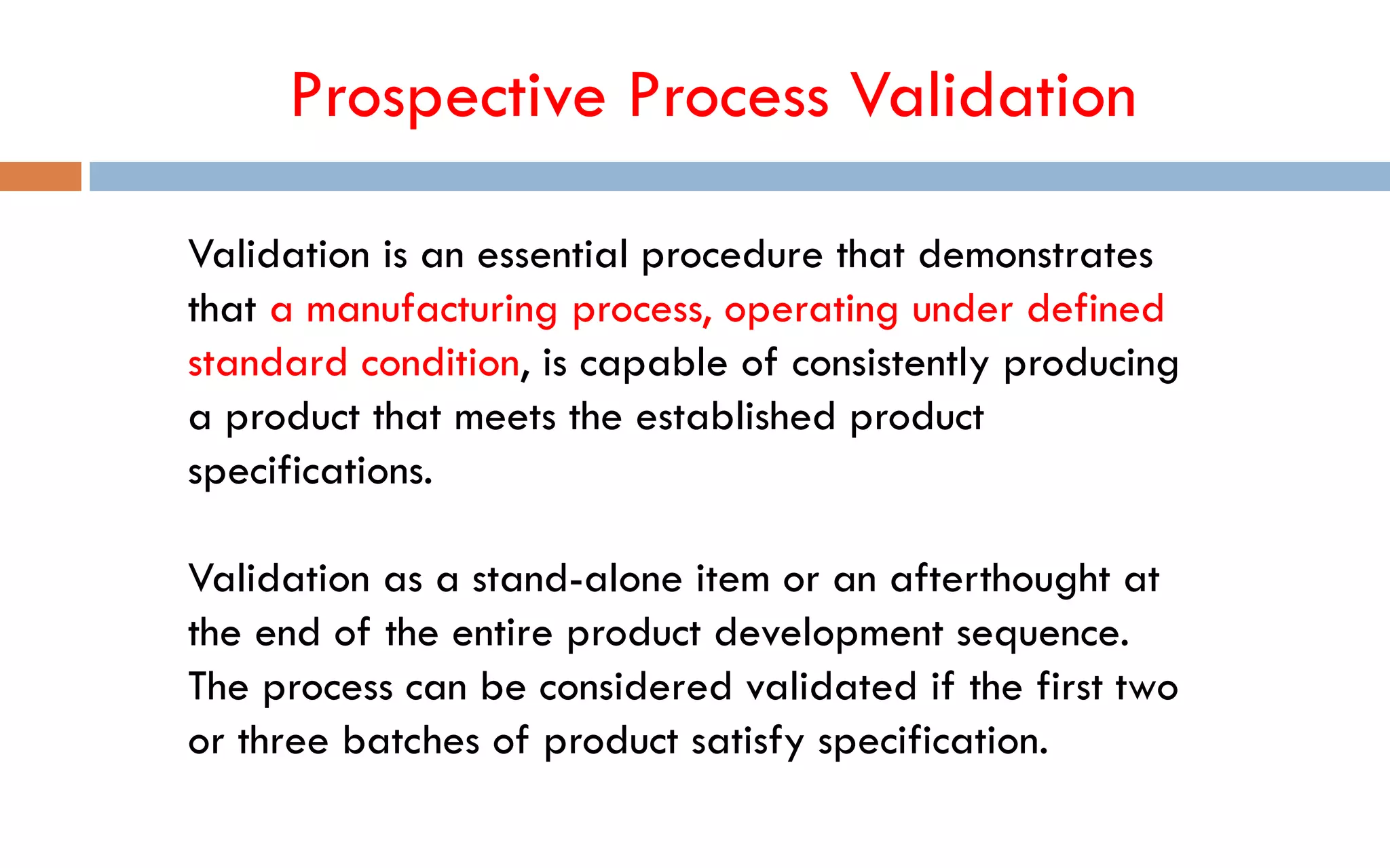 1) Prospective process validation requires a planned program from early development stages and utilizes information generated throughout development to validate the final production process.
