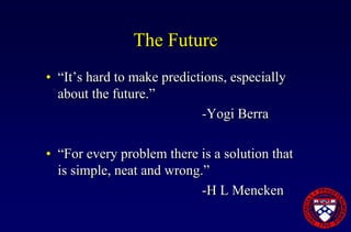 This document provides an overview of prostate cancer, including who is affected, risk factors, detection methods like PSA testing and biopsy, staging using the Gleason score and TNM system, and treatment options like surgery, radiation therapy, active surveillance, and androgen blockade. It discusses outcomes for different treatments and challenges in managing prostate cancer recurrence after initial therapy.