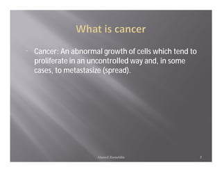 This document provides information about prostate cancer including its anatomy, grading, staging, risk classification, diagnostic workup, and treatment options. It discusses in detail Gleason scoring, TNM staging, factors that determine risk classification as localized, locally advanced, or metastatic disease. Treatment strategies are outlined depending on risk classification, including active surveillance, surgery, radiation therapy, hormone therapy, and chemotherapy. Treatment related side effects and long term outcomes are also summarized.