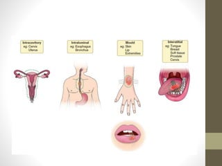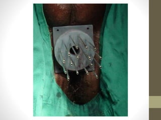 Brachytherapy is an excellent treatment for prostate cancer that provides long term tumor control comparable to radical prostatectomy and external beam radiation therapy. It involves placing radioactive sources directly in the prostate gland temporarily or permanently. Common radioactive sources include iodine-125 and palladium-103 seeds. Brachytherapy can be used as monotherapy for low risk prostate cancer or as a radiation boost combined with external beam radiation for higher risk disease. It allows a highly conformal dose to be delivered to the prostate while sparing surrounding tissues from radiation exposure. Brachytherapy is generally a low risk treatment with most side effects being temporary increased urinary symptoms. It provides patients an alternative to surgery or external beam radiation for localized prostate cancer