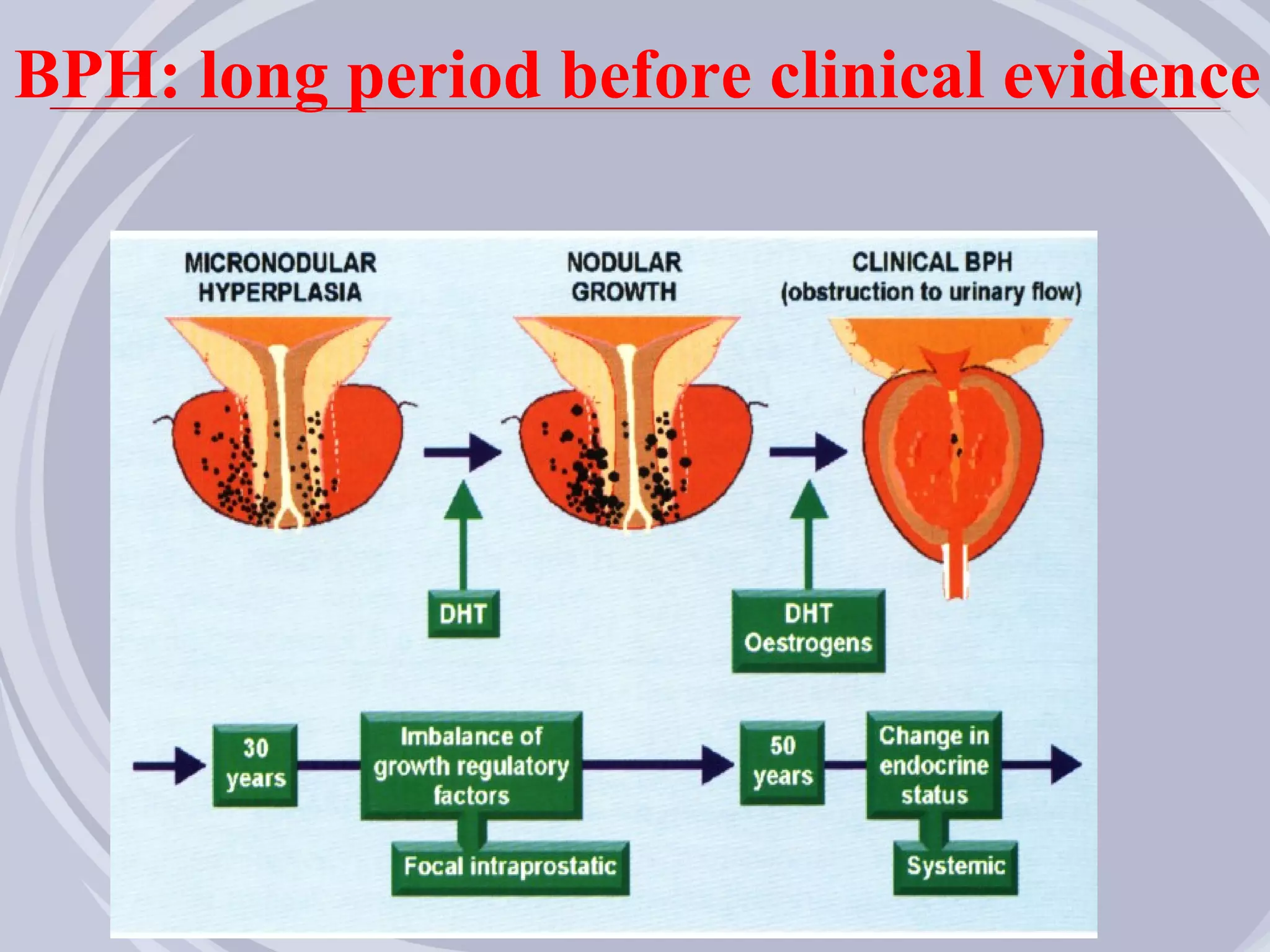 2. Evidence from histological, clinical, and epidemiological studies suggests that chronic prostatic inflammation is associated with larger prostate volume and an increased risk of BPH progression.