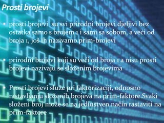 Prosti brojevi služe pri faktorizaciji, odnosno