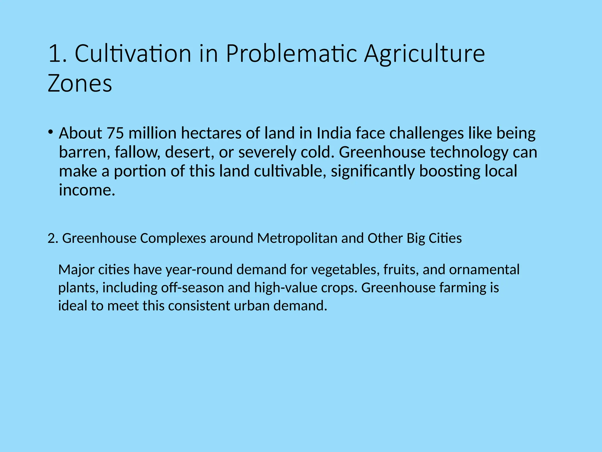 barren, fallow, desert, or severely cold. Greenhouse technology can