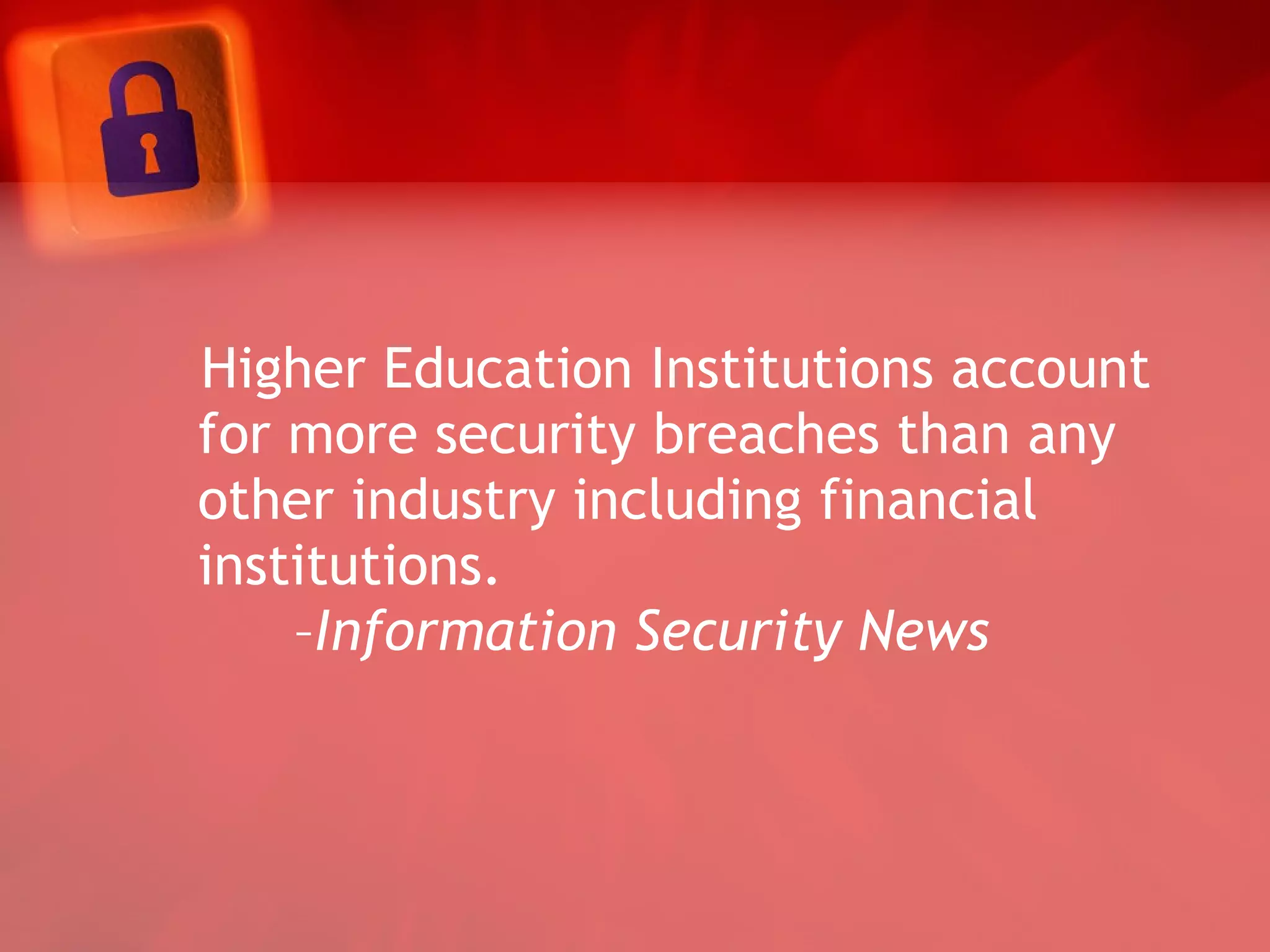 Higher education institutions experience more data breaches than any other industry. The document discusses privacy and security laws and regulations that apply to higher education such as FERPA, GLB, and state privacy laws. It provides recommendations for developing a comprehensive privacy program including inventorying information assets, assessing risks, reviewing policies, training employees, and monitoring compliance.